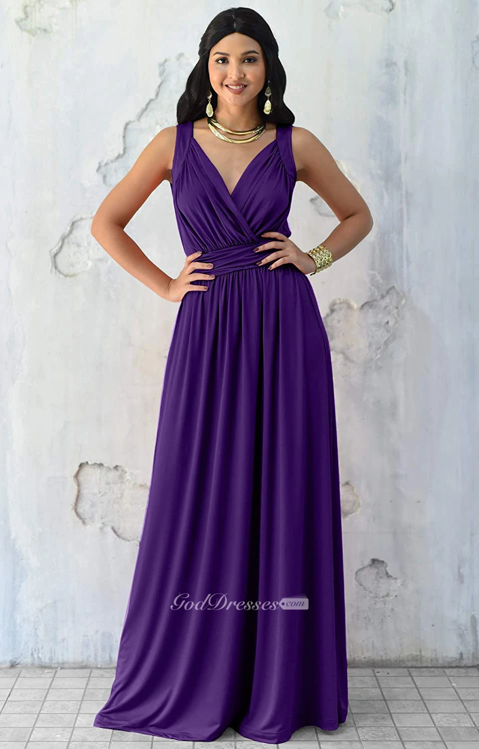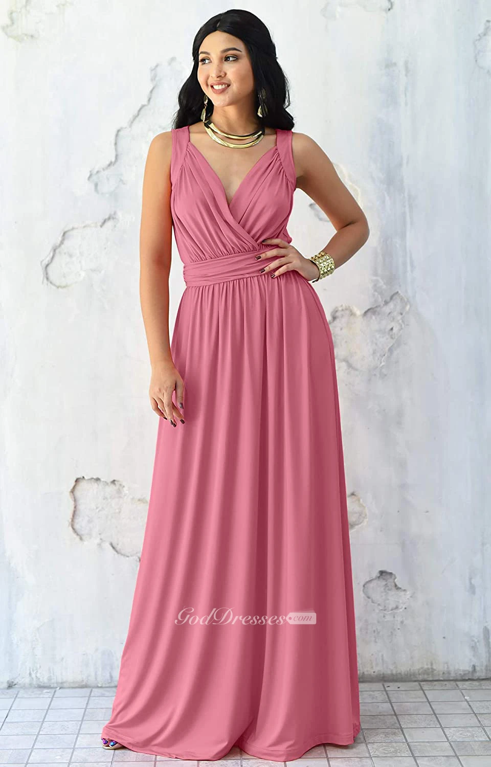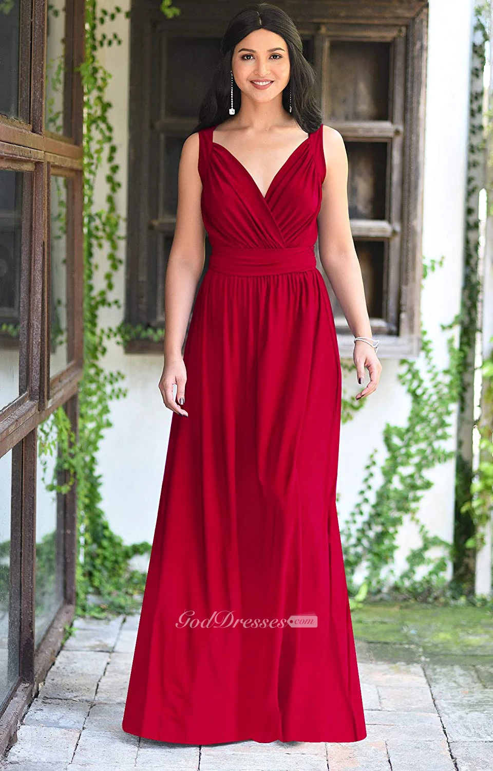 Sexy V-neck A Line Sleeveless Floor-length Chiffon Bridesmaid Dress With Ruching