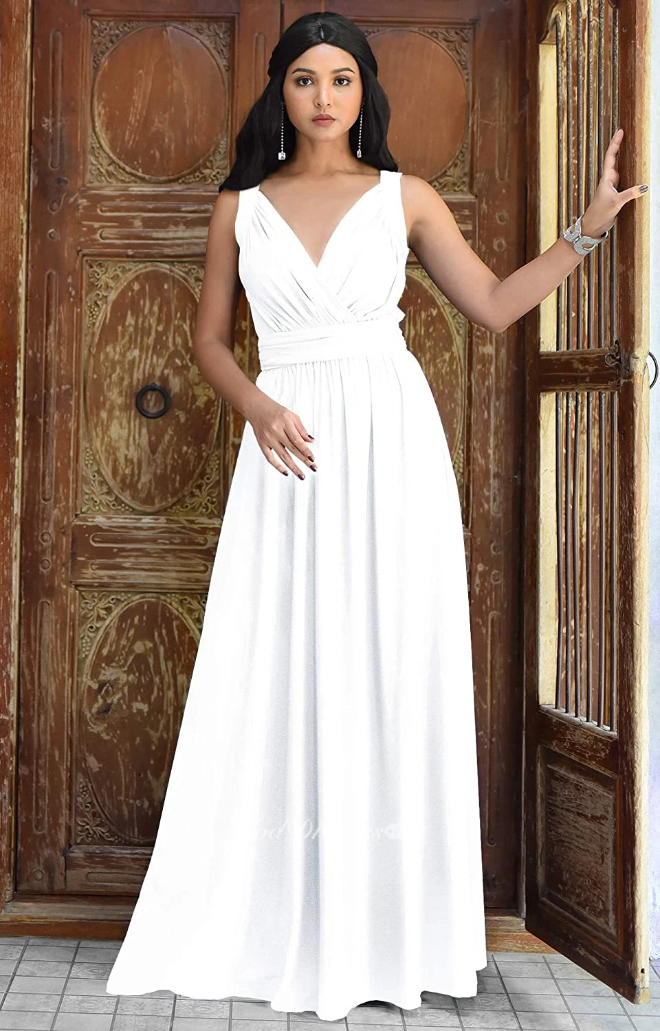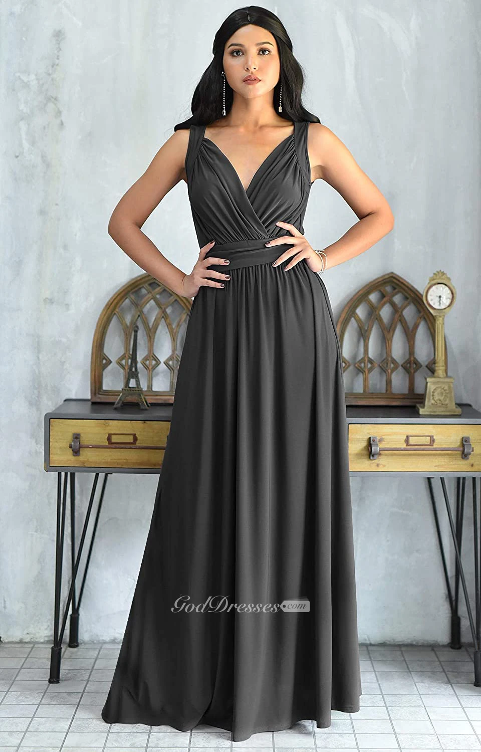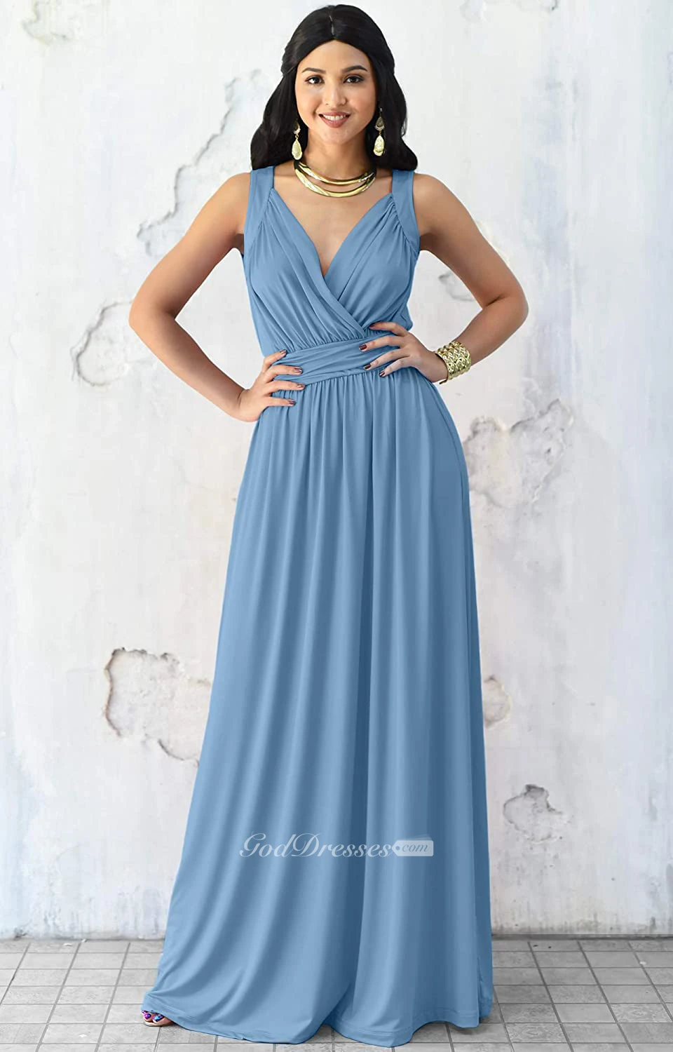 Sexy V-neck A Line Sleeveless Floor-length Chiffon Bridesmaid Dress With Ruching