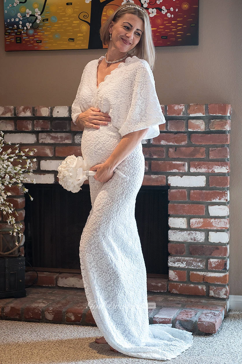Sheath Bat 3/4 Length Sleeve Empire Maternity Wedding Dress