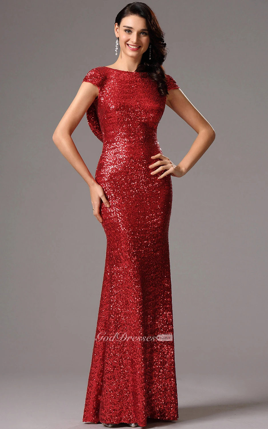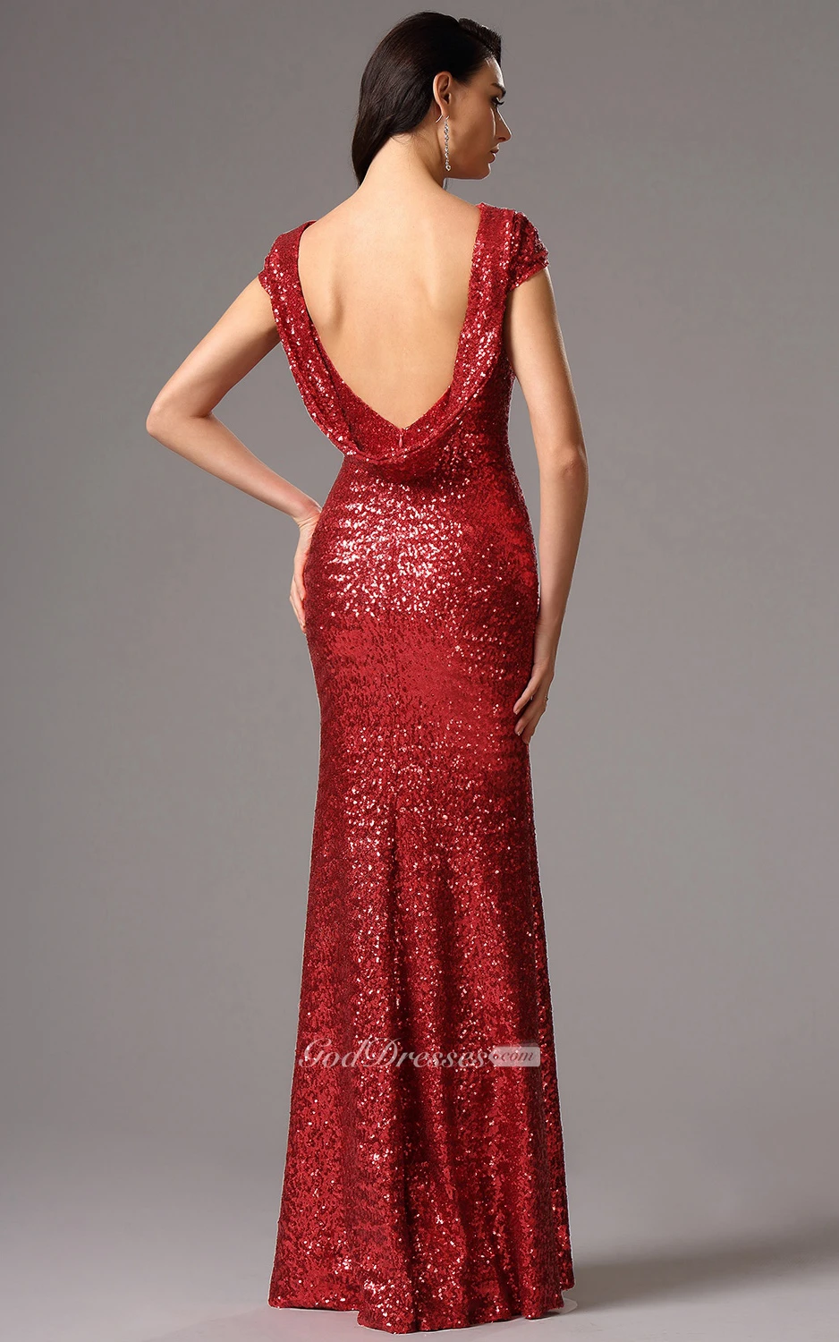 Sheath Bateau Short Sleeve Sequins Backless Dress