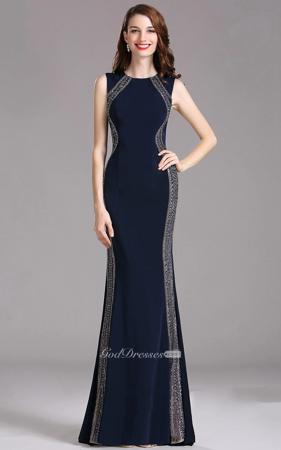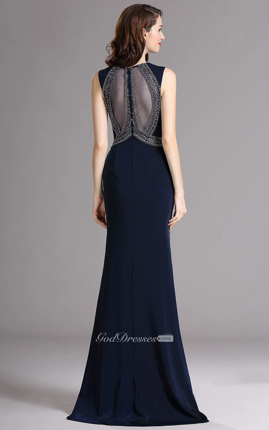 Sheath Bateau Sleeveless Jersey Beading Illusion Dress
