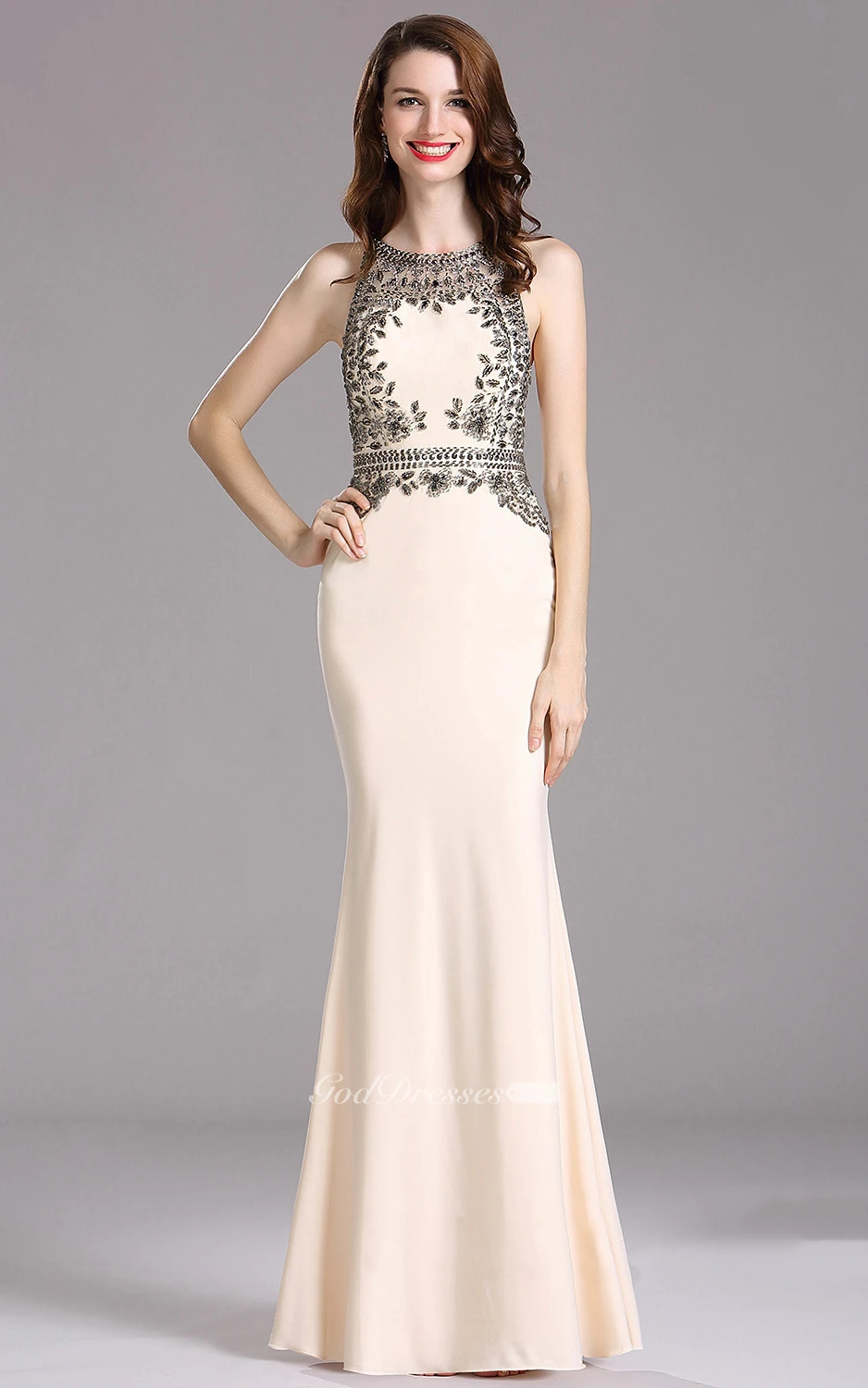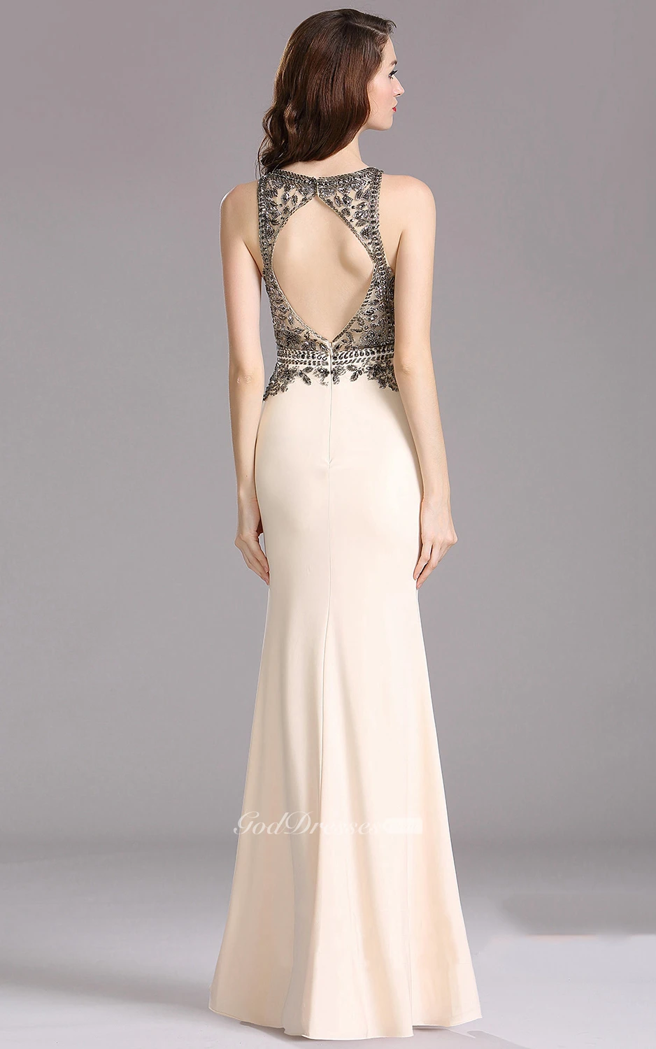Sheath Bateau Sleeveless Jersey Beading Keyhole Dress