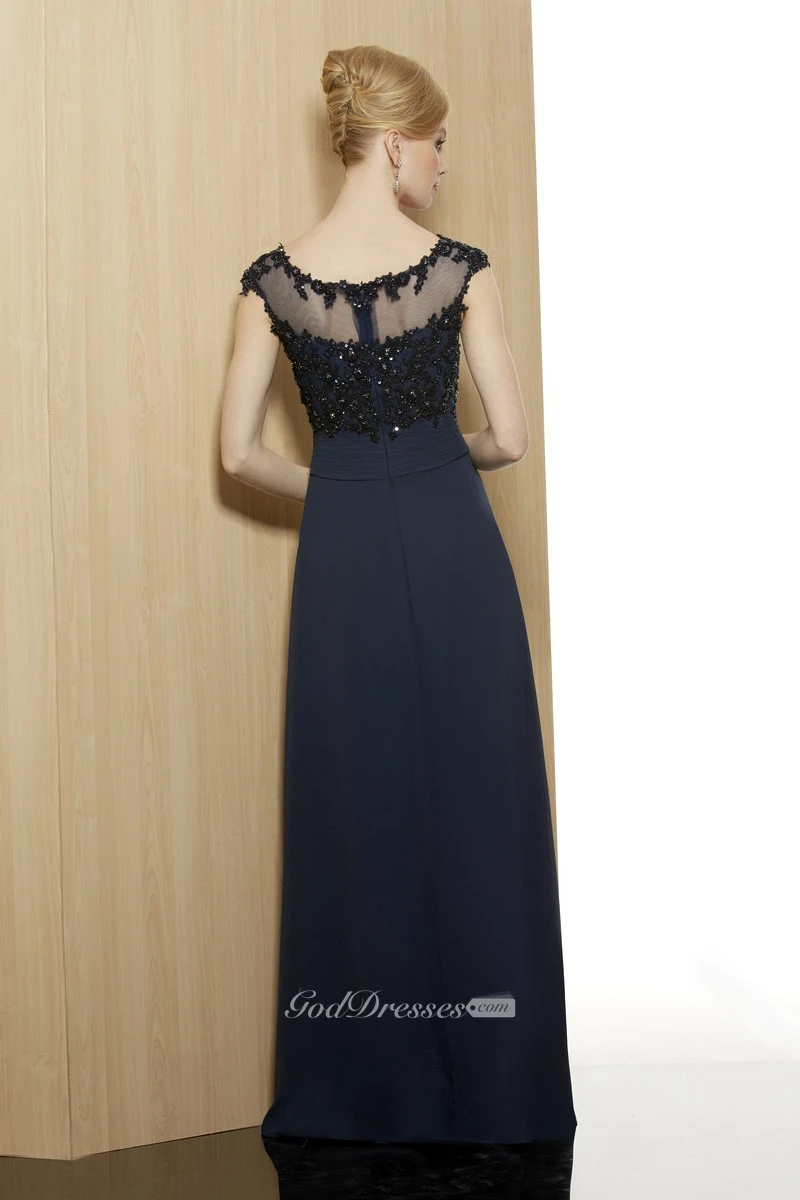 Sheath Beaded Sleeveless Floor-Length V-Neck Chiffon Formal Dress With Illusion Back And Appliques