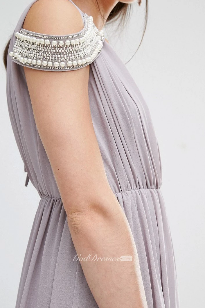 Sheath Beaded V-Neck Chiffon Bridesmaid Dress With Criss Cross