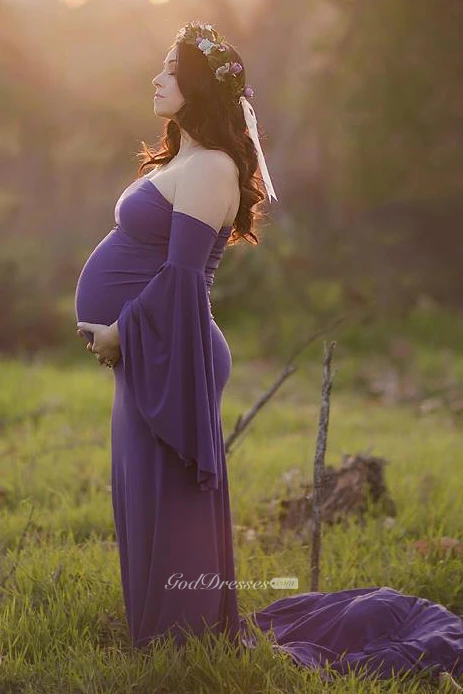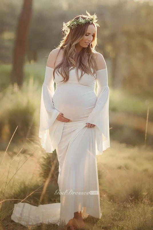 Sheath Bell Long Sleeve Empire Maternity Dress