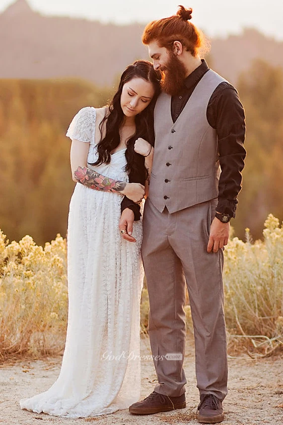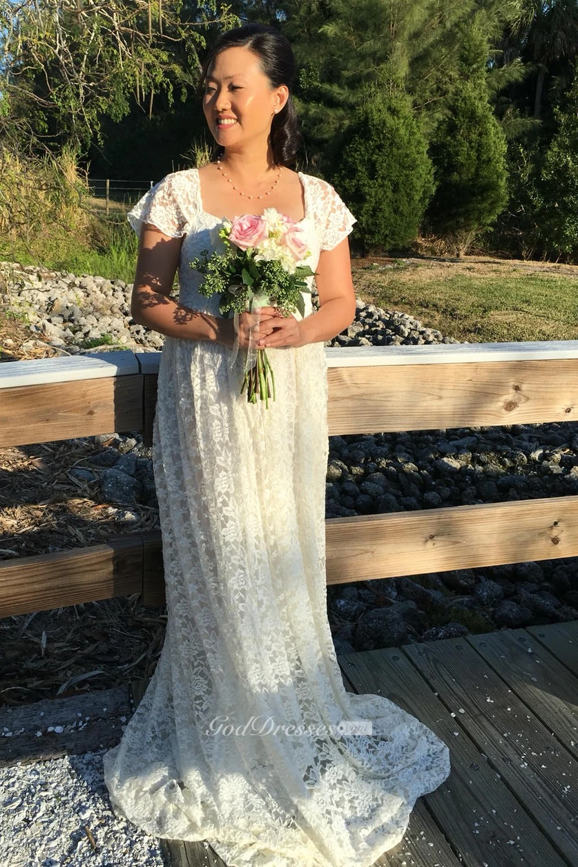 Sheath Cap Short Sleeve Empire Maternity Wedding Dress