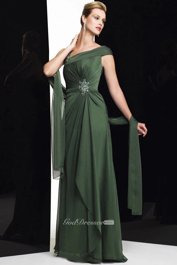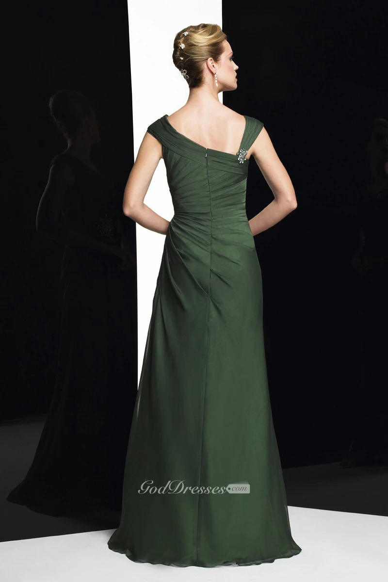 Sheath Cap-Sleeve Maxi Broach Chiffon Formal Dress With Draping