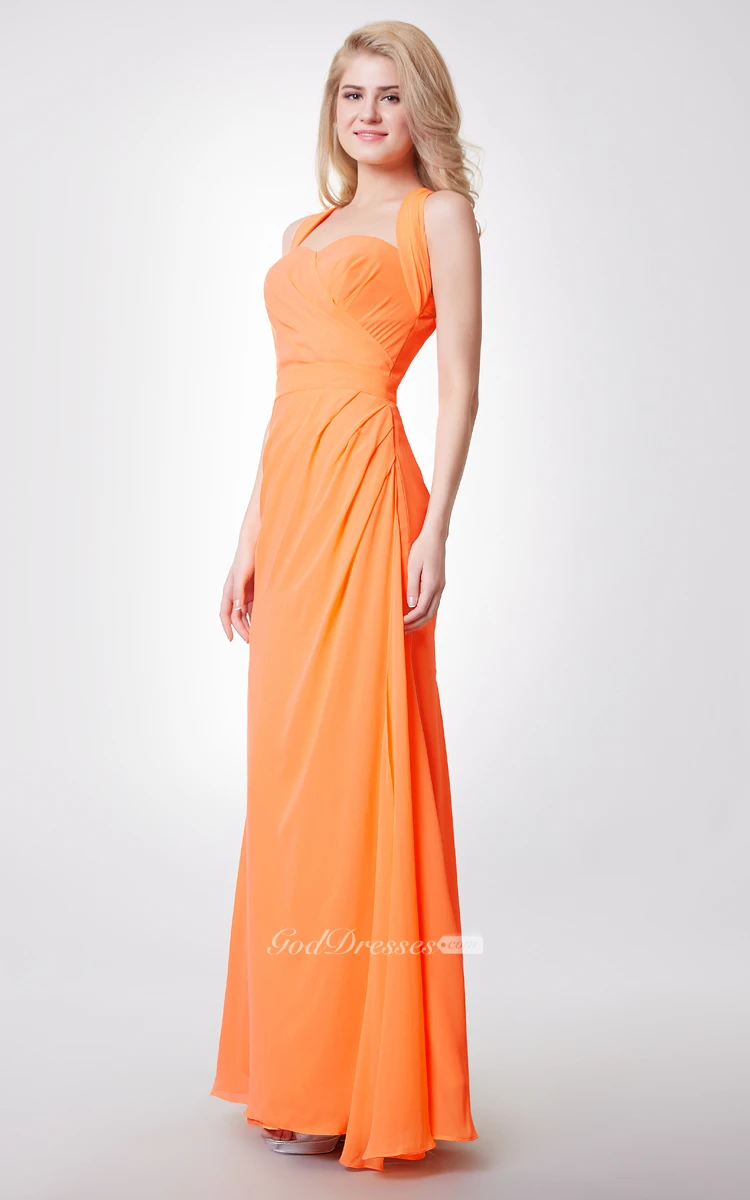 Sheath Chiffon Long Dress Back Crisscross Straps