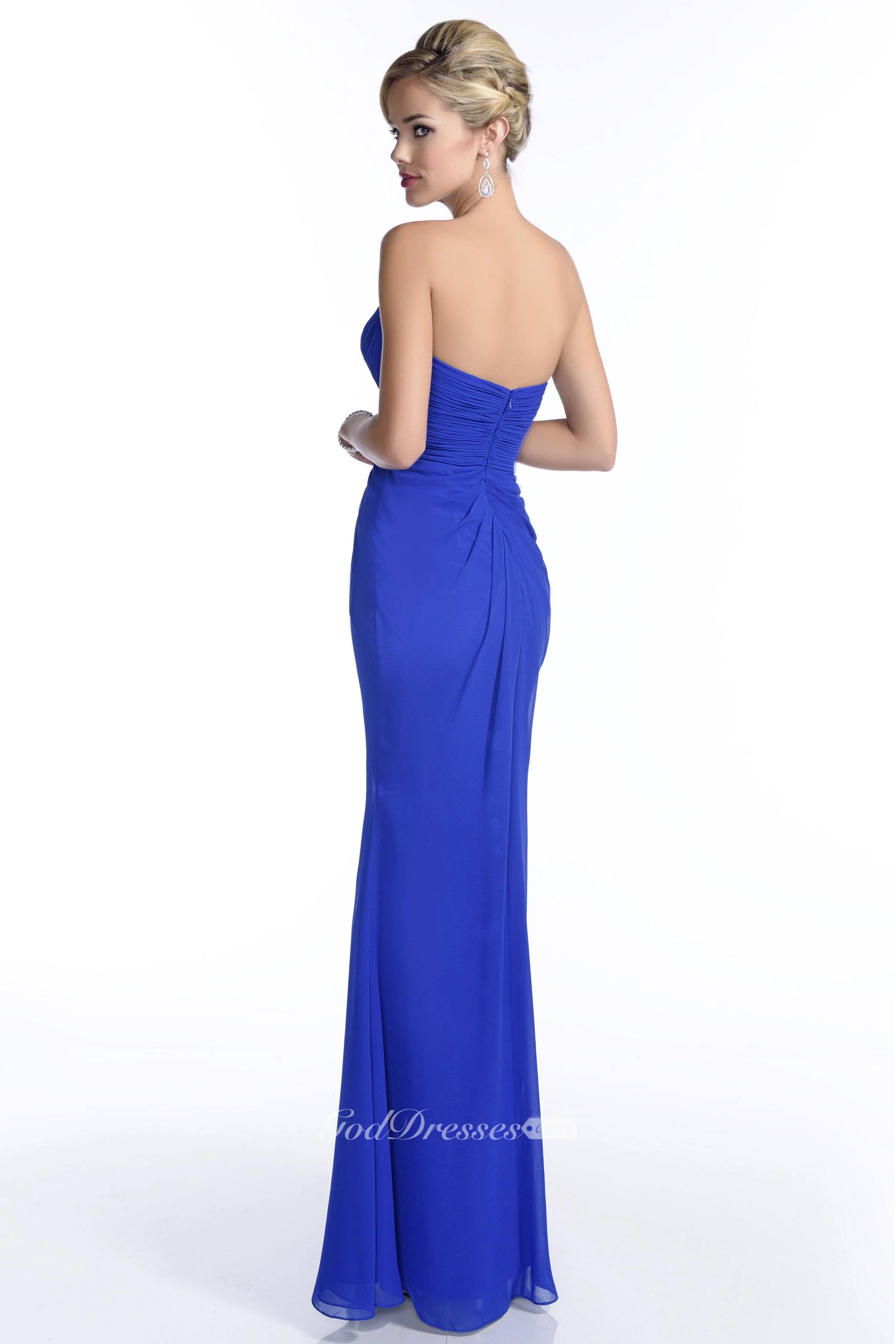Sheath Chiffon Sweetheart Bridesmaid Dress With Side Split And Crystal Detailing