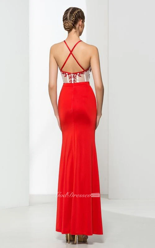 Sheath Criss-Cross Straps Split-Front Prom Dress