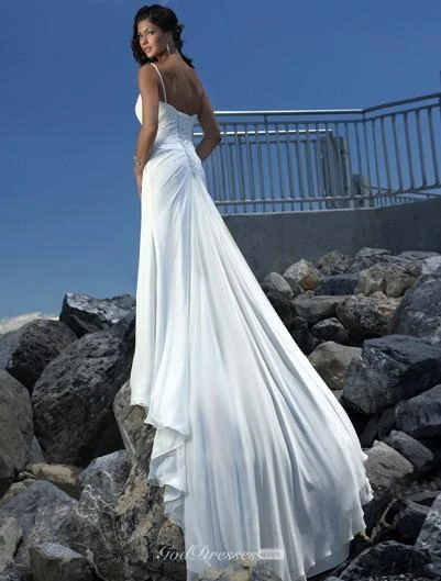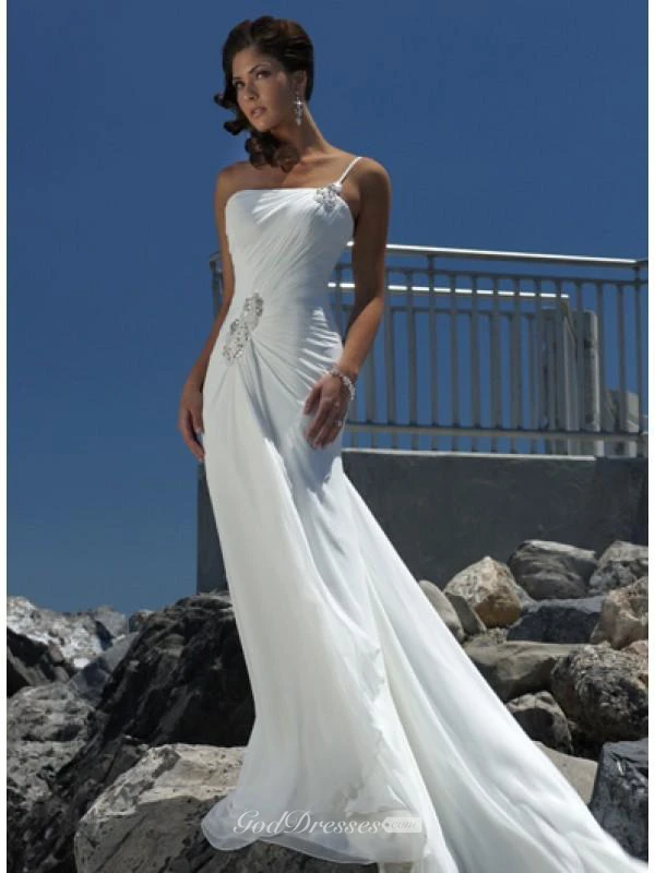 sheath Empire One Shoulder Chiffon Beach Wedding Dress
