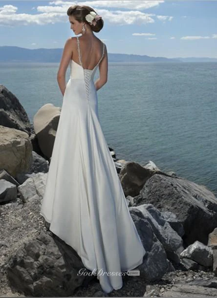 sheath Empire Spaghetti Straps Chiffon Beach Wedding Dress
