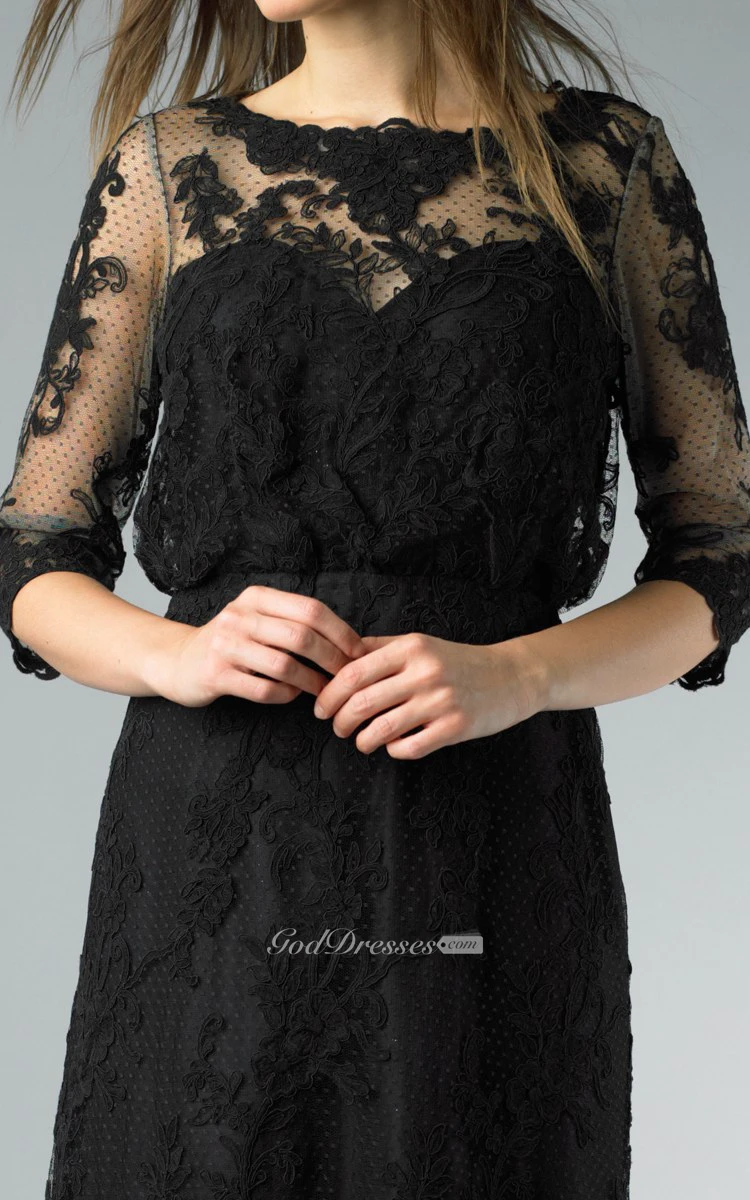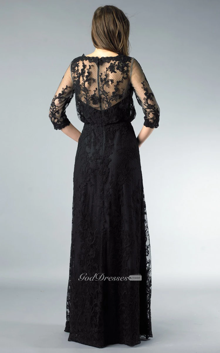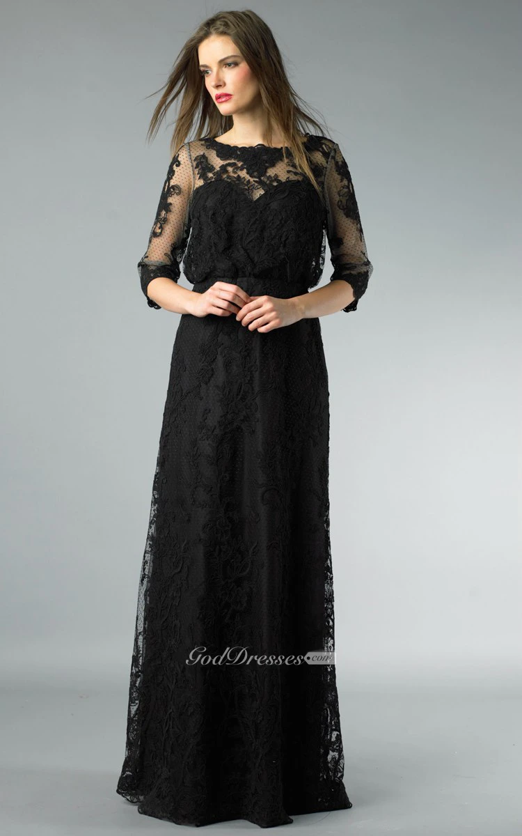 Sheath Floor-length High Neck Long Sleeve Lace Illusion Dress