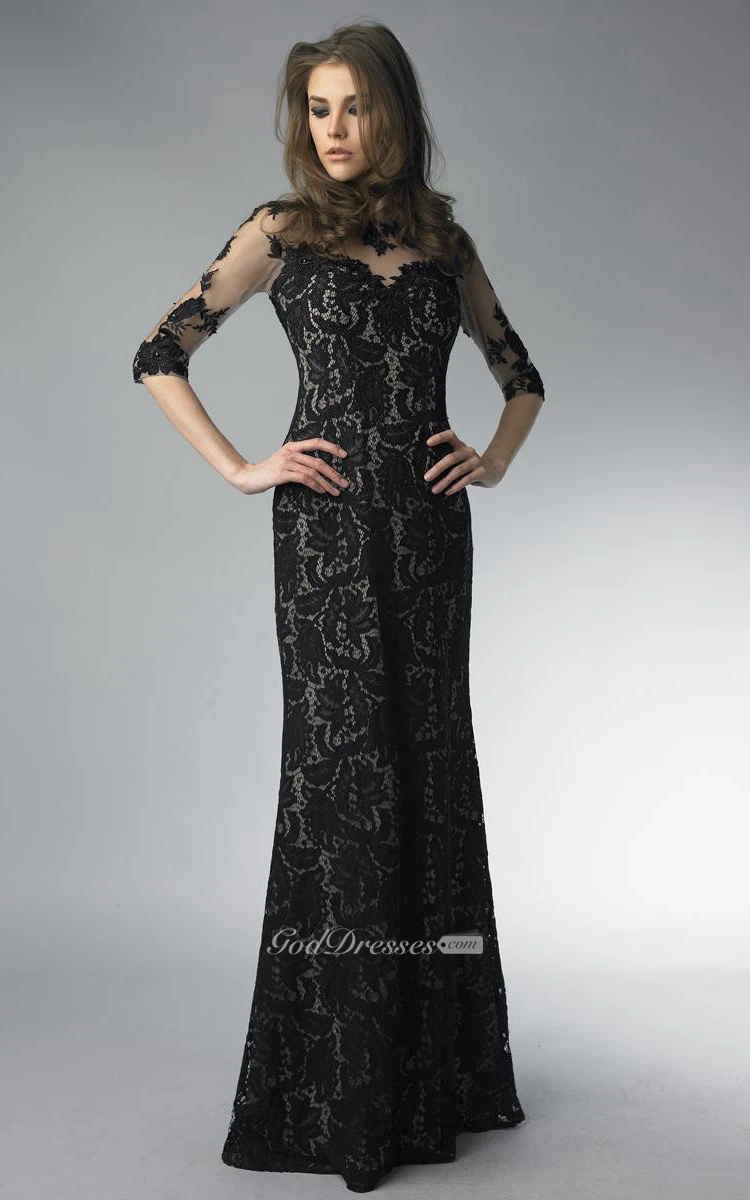 Sheath Floor-length High Neck Long Sleeve Lace Zipper Dress
