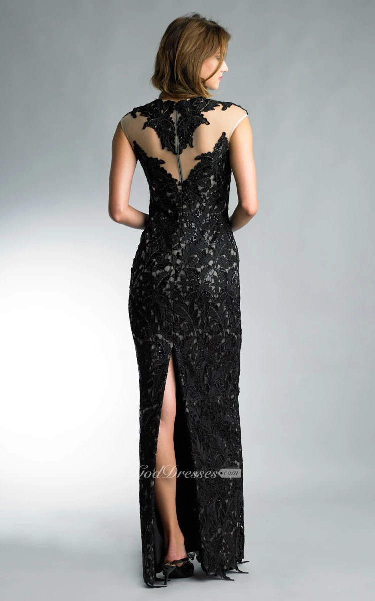 Sheath Floor-length High Neck Short Sleeve Lace Zipper Dress