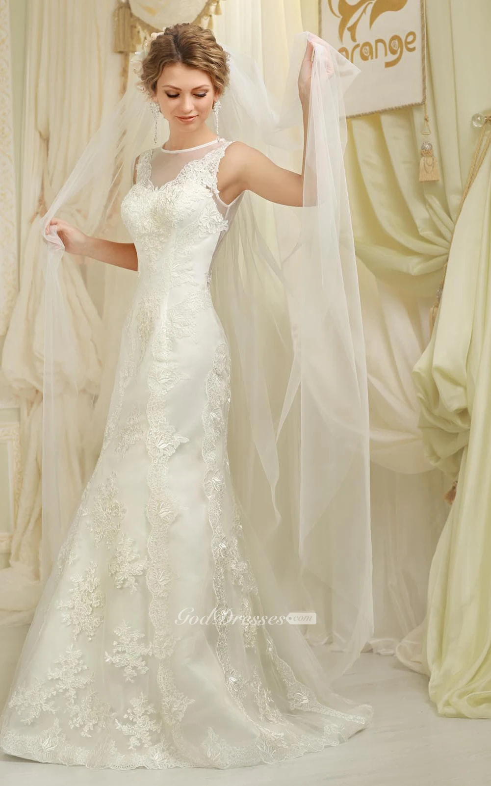 Sheath Floor-Length High-Neck Sleeveless Illusion Lace Dress
