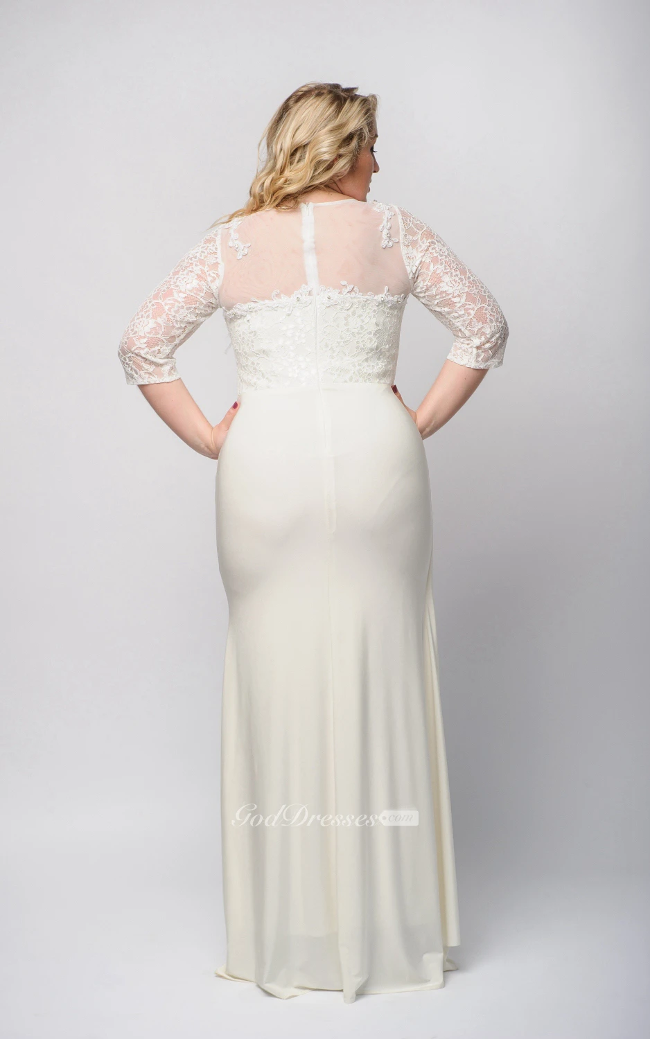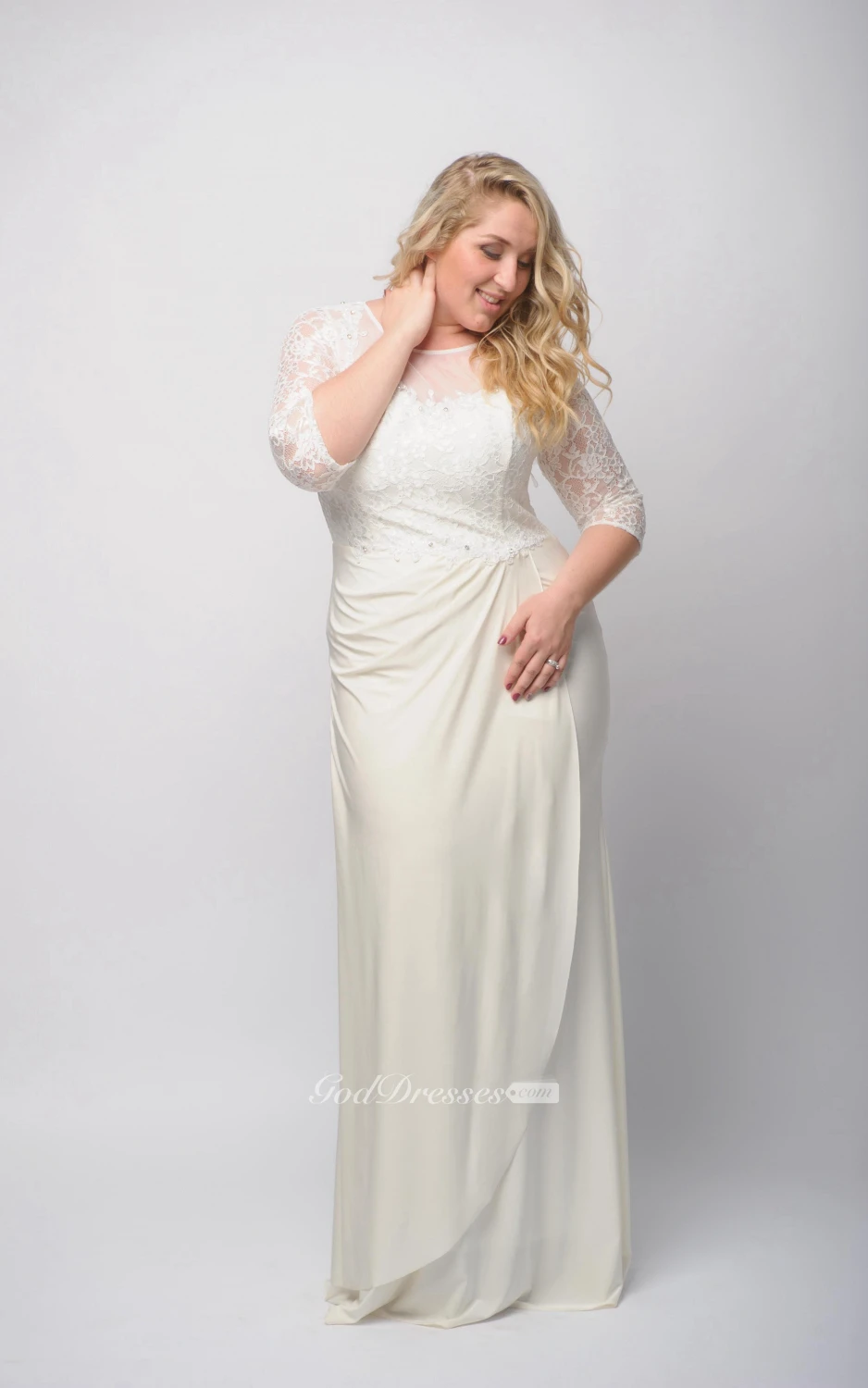 Sheath Floor-Length Jewel 3 Jersey Beading Lace Zipper Dress