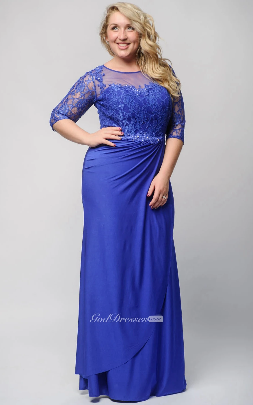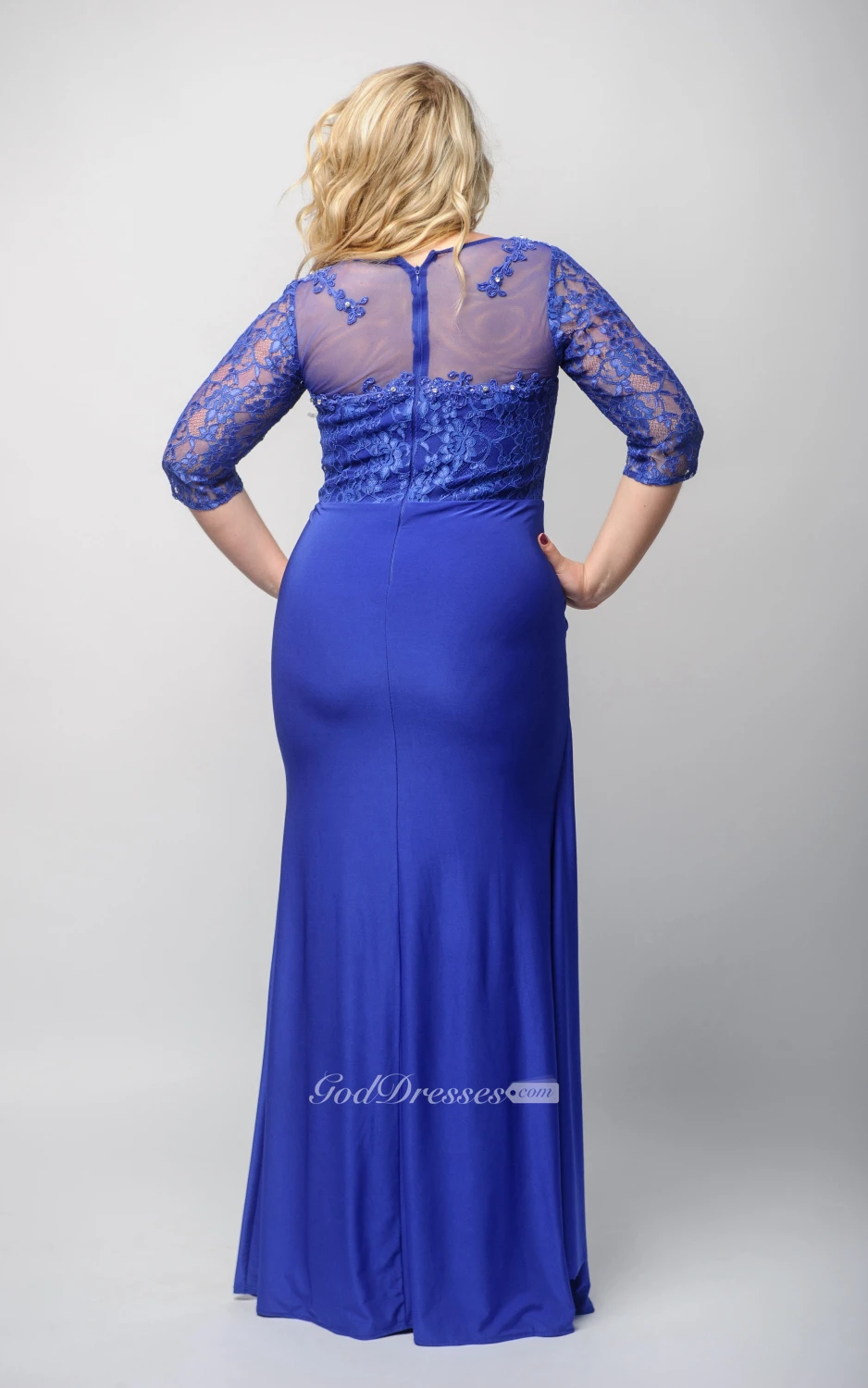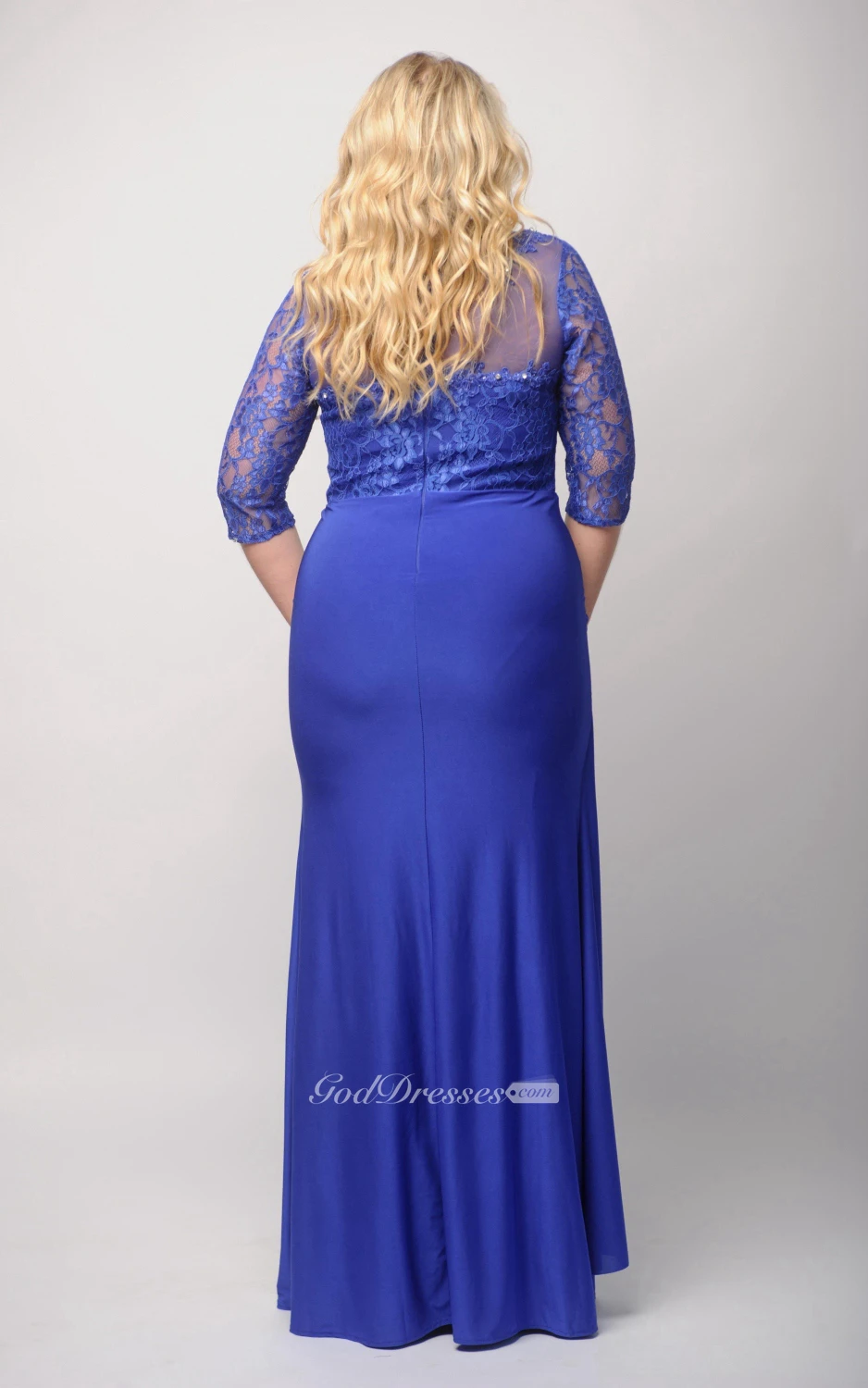 Sheath Floor-Length Jewel Half Sleeve Jersey Beading Lace Zipper Dress