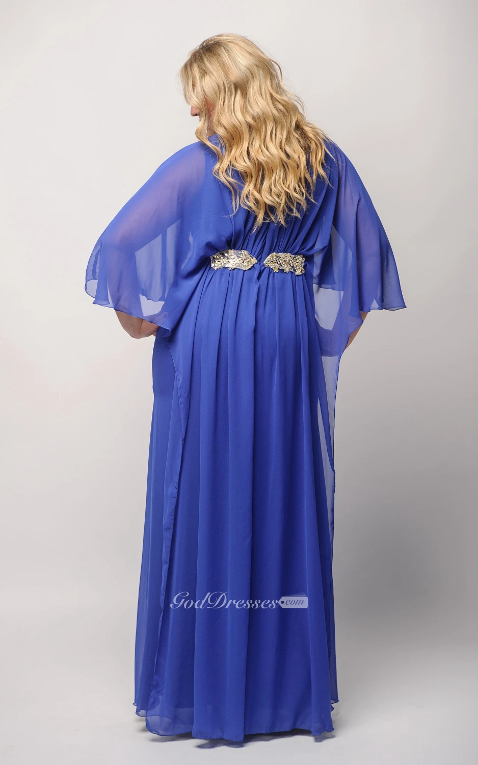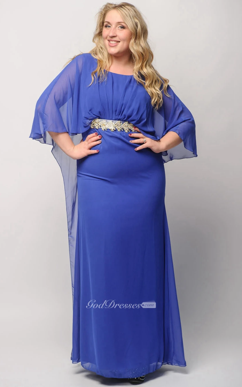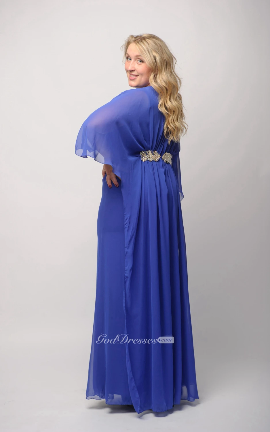 Sheath Floor-Length Jewel Long Sleeve Empire Chiffon Pleats Beading Zipper Dress