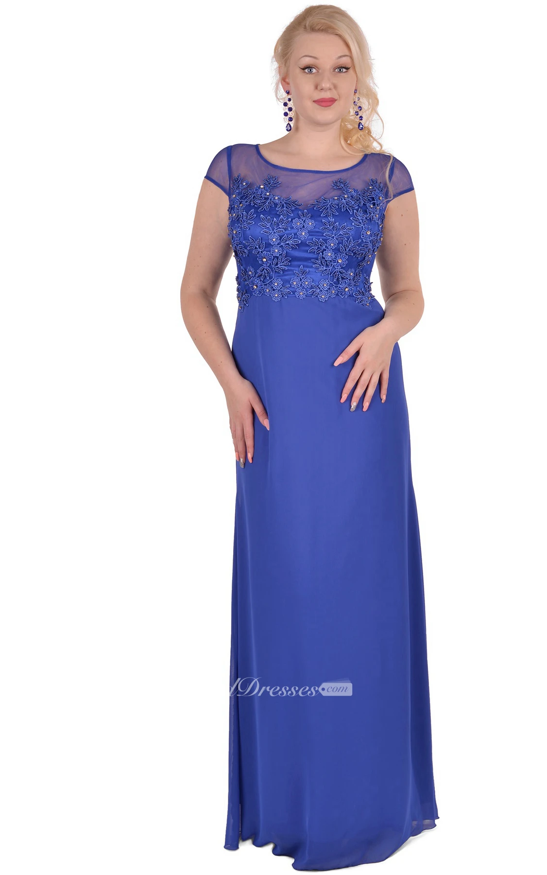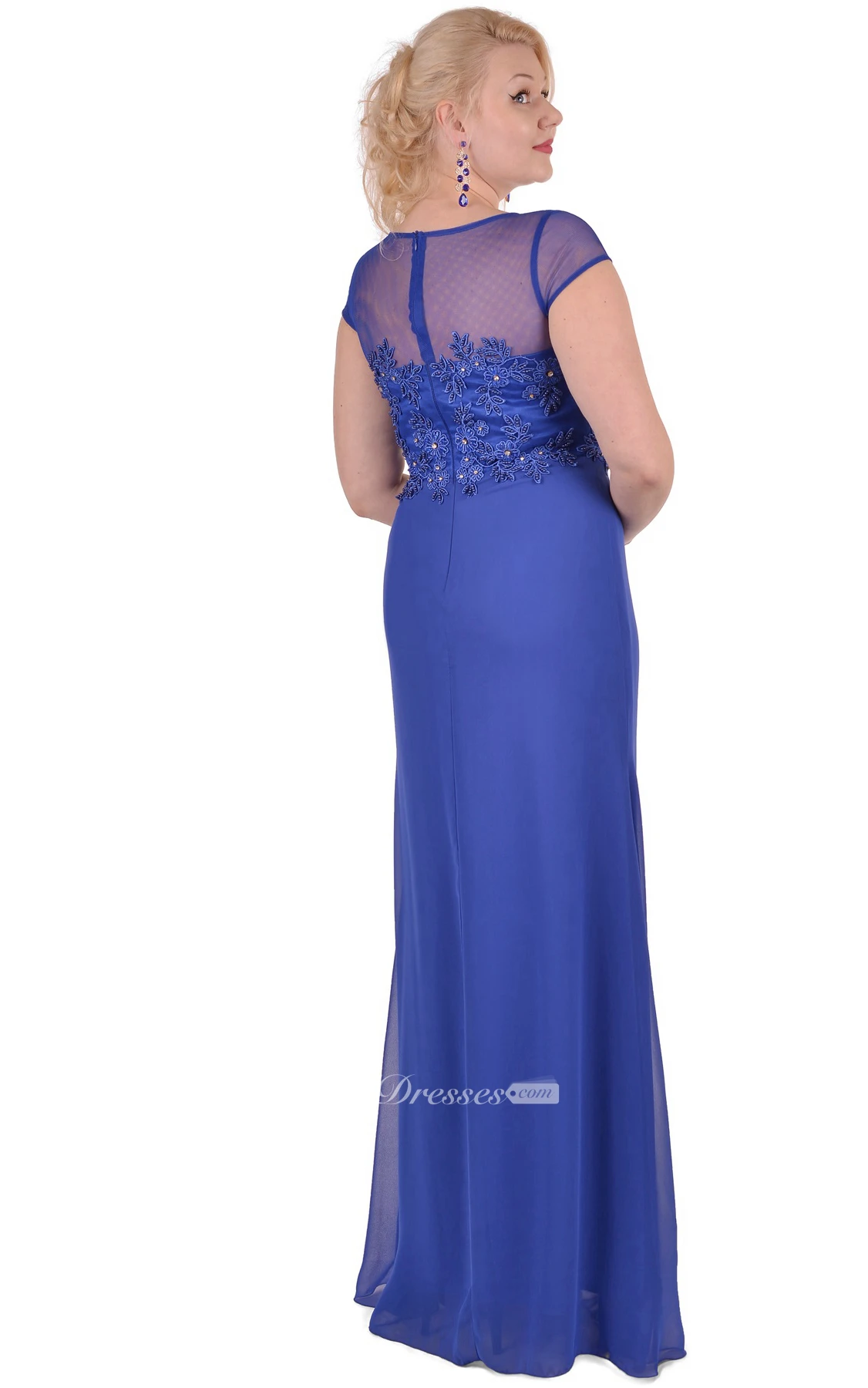 Sheath Floor-Length Jewel Short Sleeve Chiffon Appliques Zipper Dress