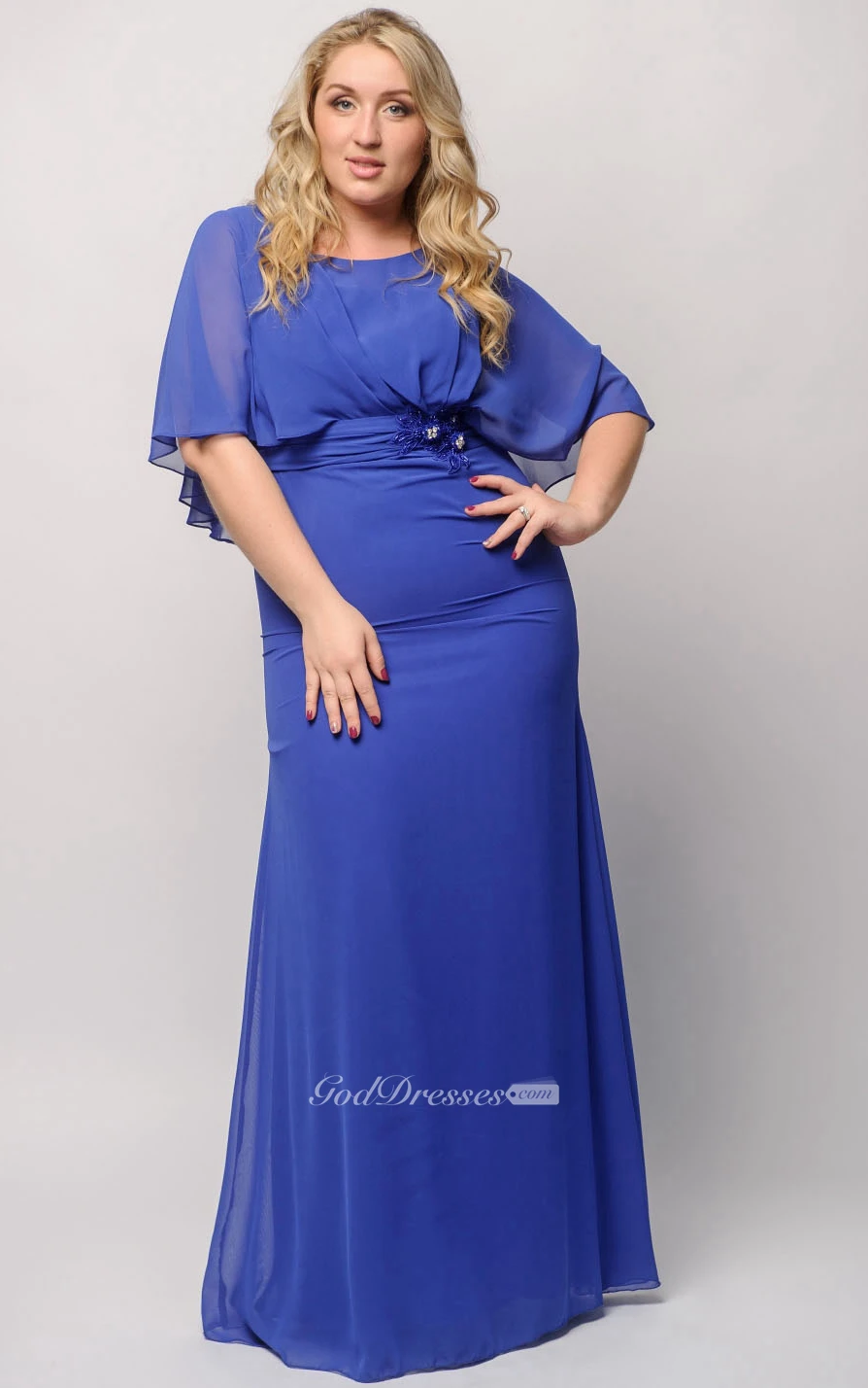 Sheath Floor-Length Jewel Short Sleeve Empire Chiffon Ruffles Zipper Dress