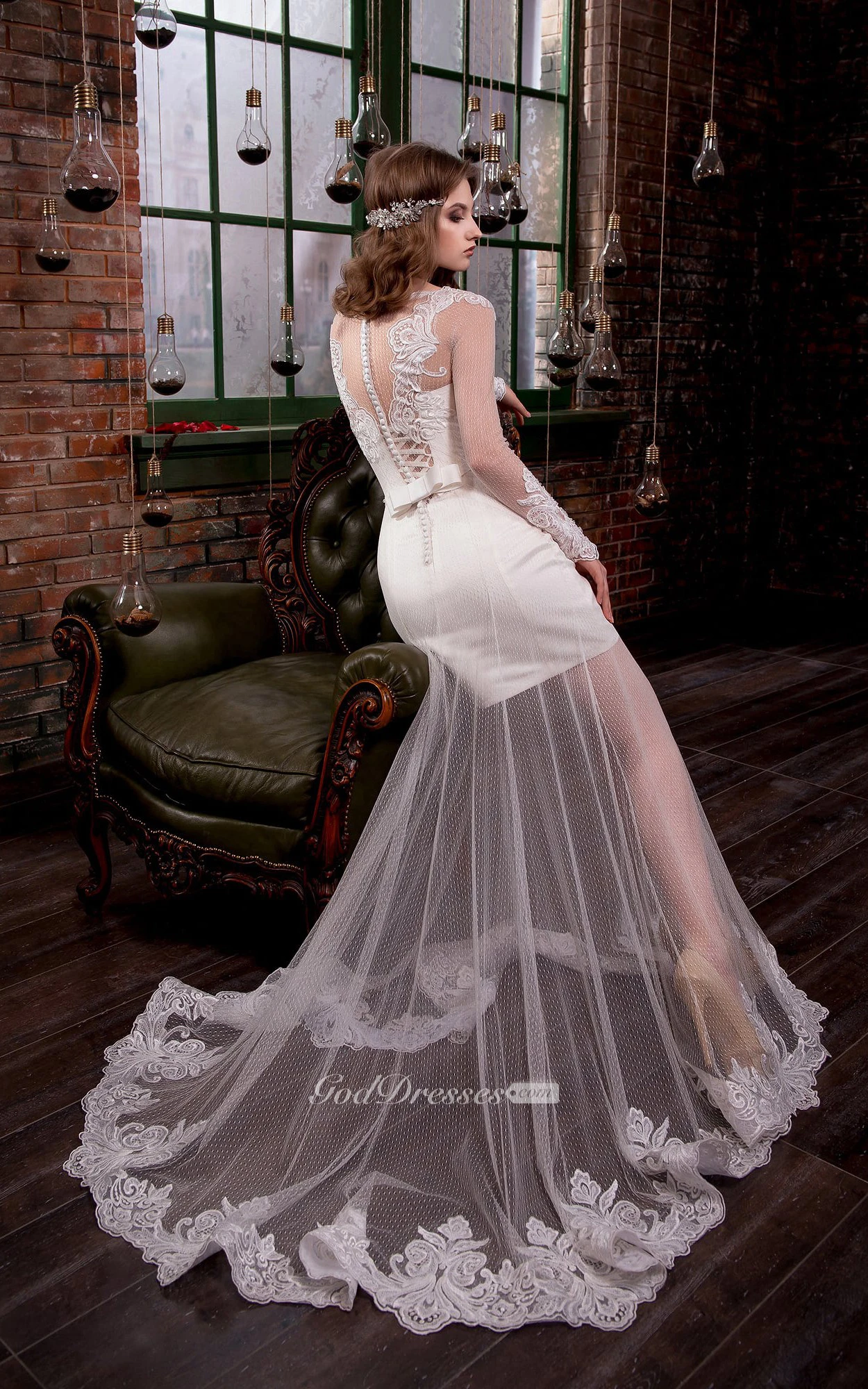 Sheath Floor-Length Scoop Long-Sleeve Illusion Tulle Dress With Appliques