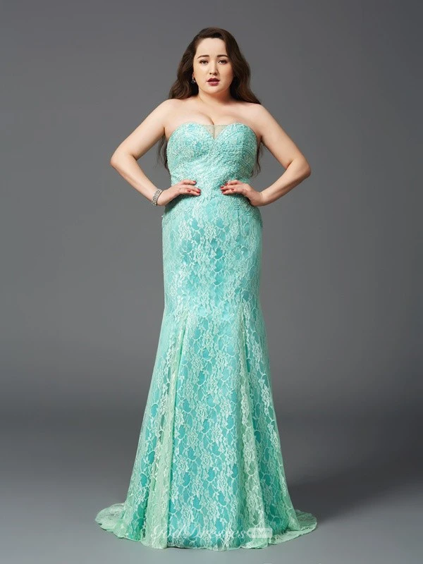 Sheath Floor-length Strapless Sleeveless Lace Brush Train Zipper Dress