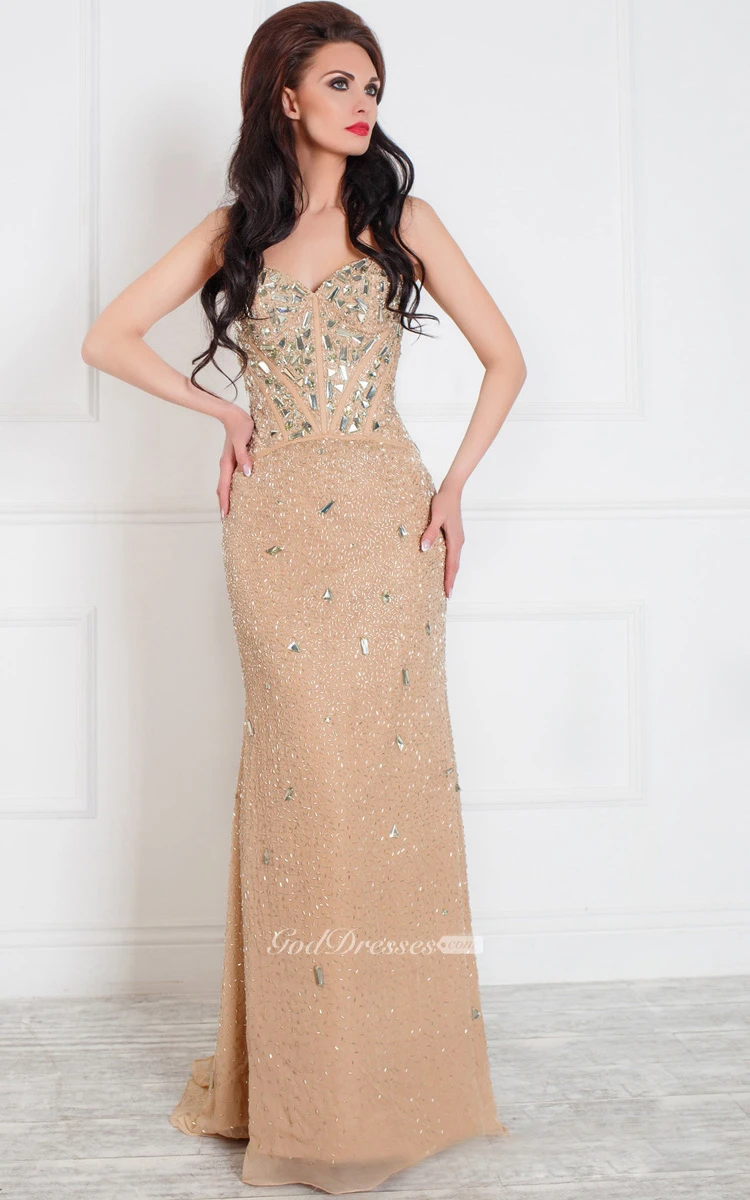 Sheath Floor-Length Sweetheart Sleeveless Chiffon Beading Pleats Zipper Dress