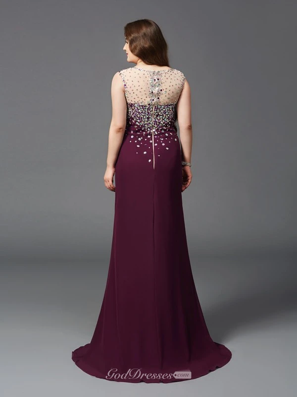 Sheath Floor-length V-neck Sleeveless Jersey Split Front Beading Illusion Dress