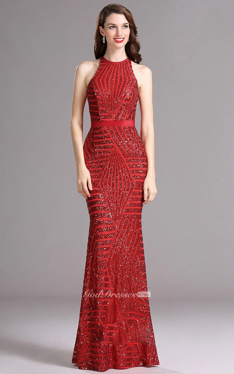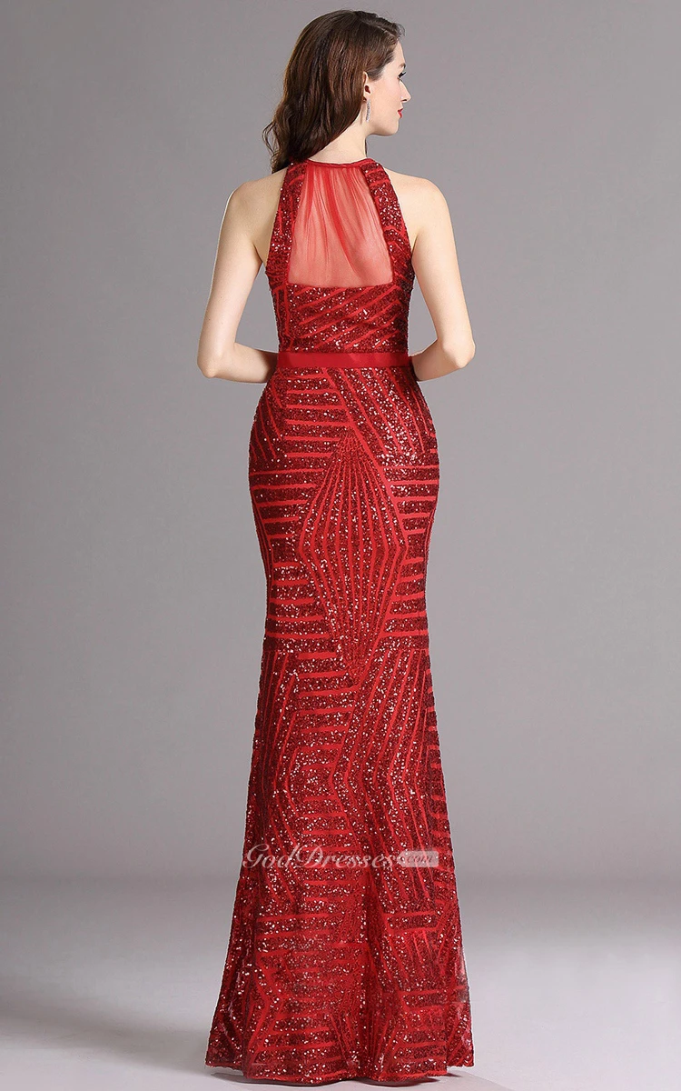 Sheath Halter Sleeveless Sequins Illusion Dress