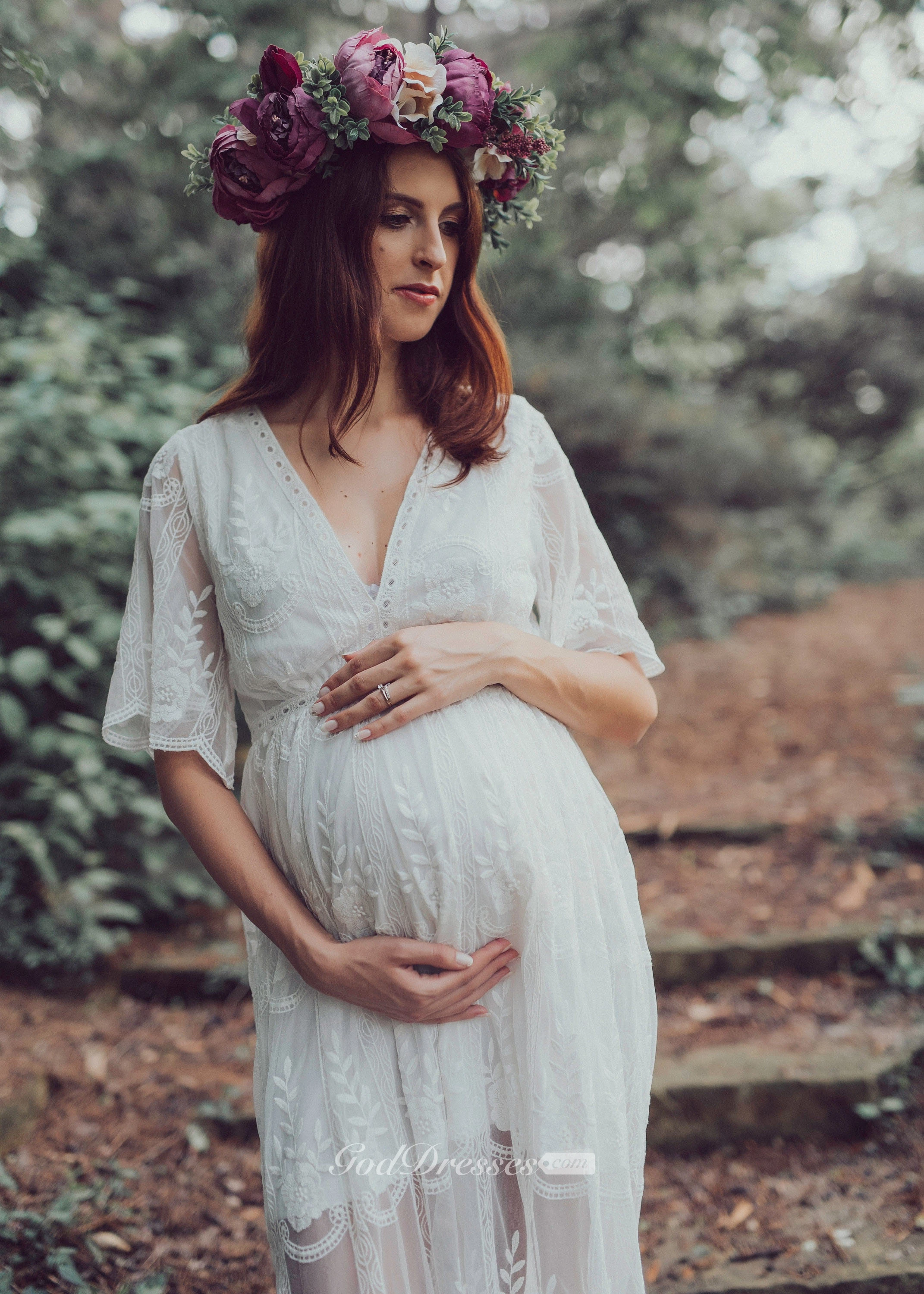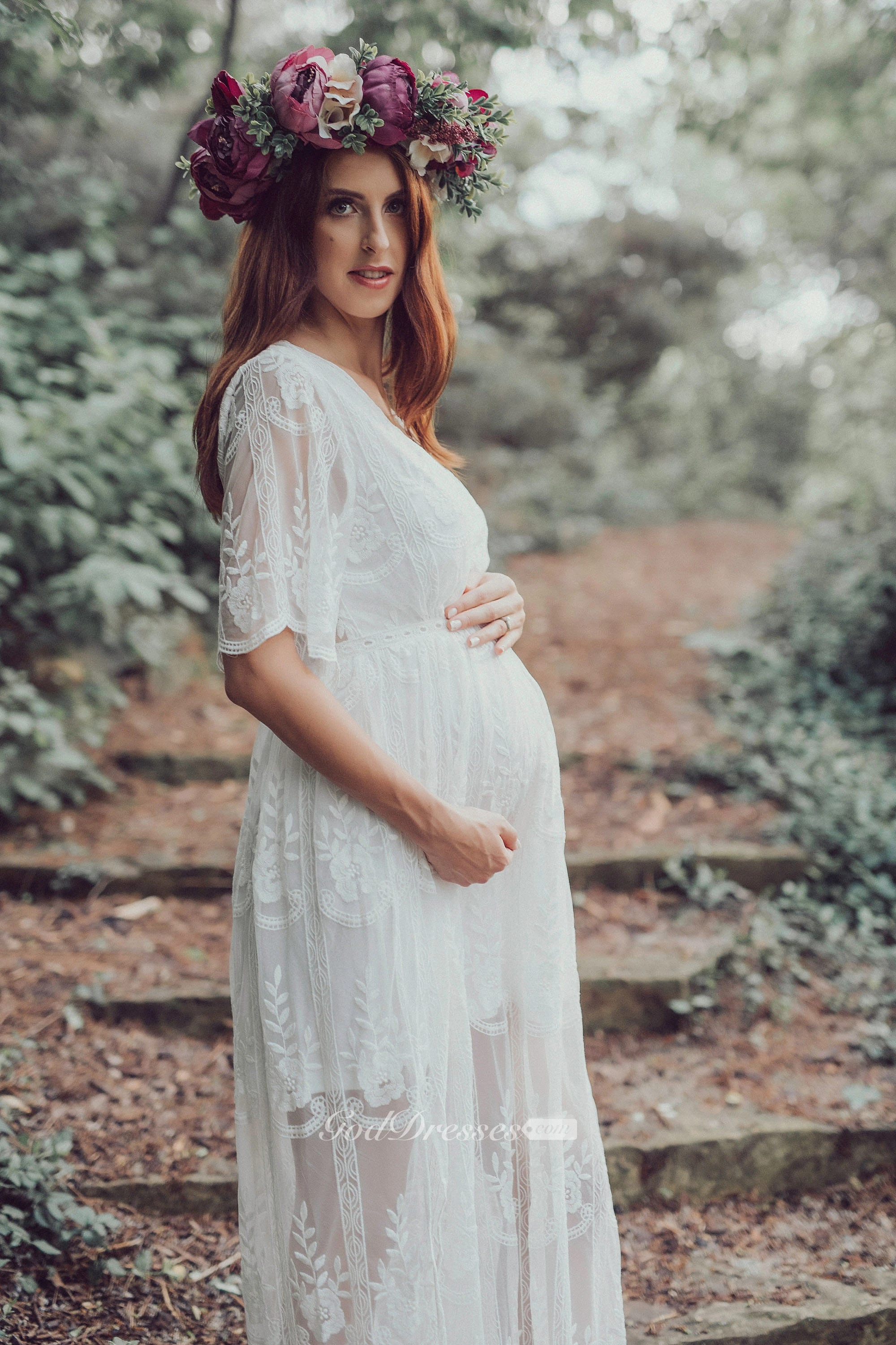 Sheath Illusion Half Sleeve Empire Maternity Wedding Dress