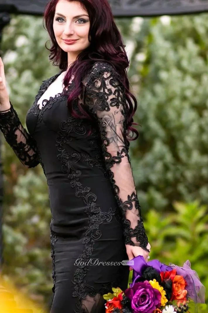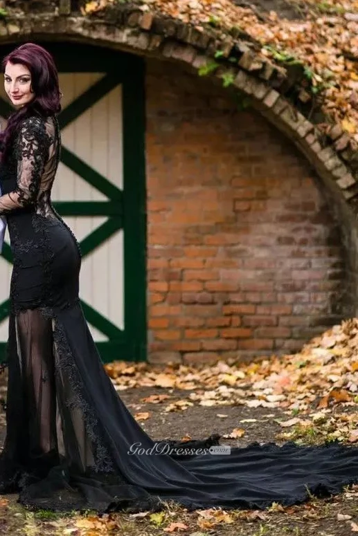 Sheath Jersey Lace V-neck Long Sleeve Floor-length Court Train Wedding Dress with Appliques
