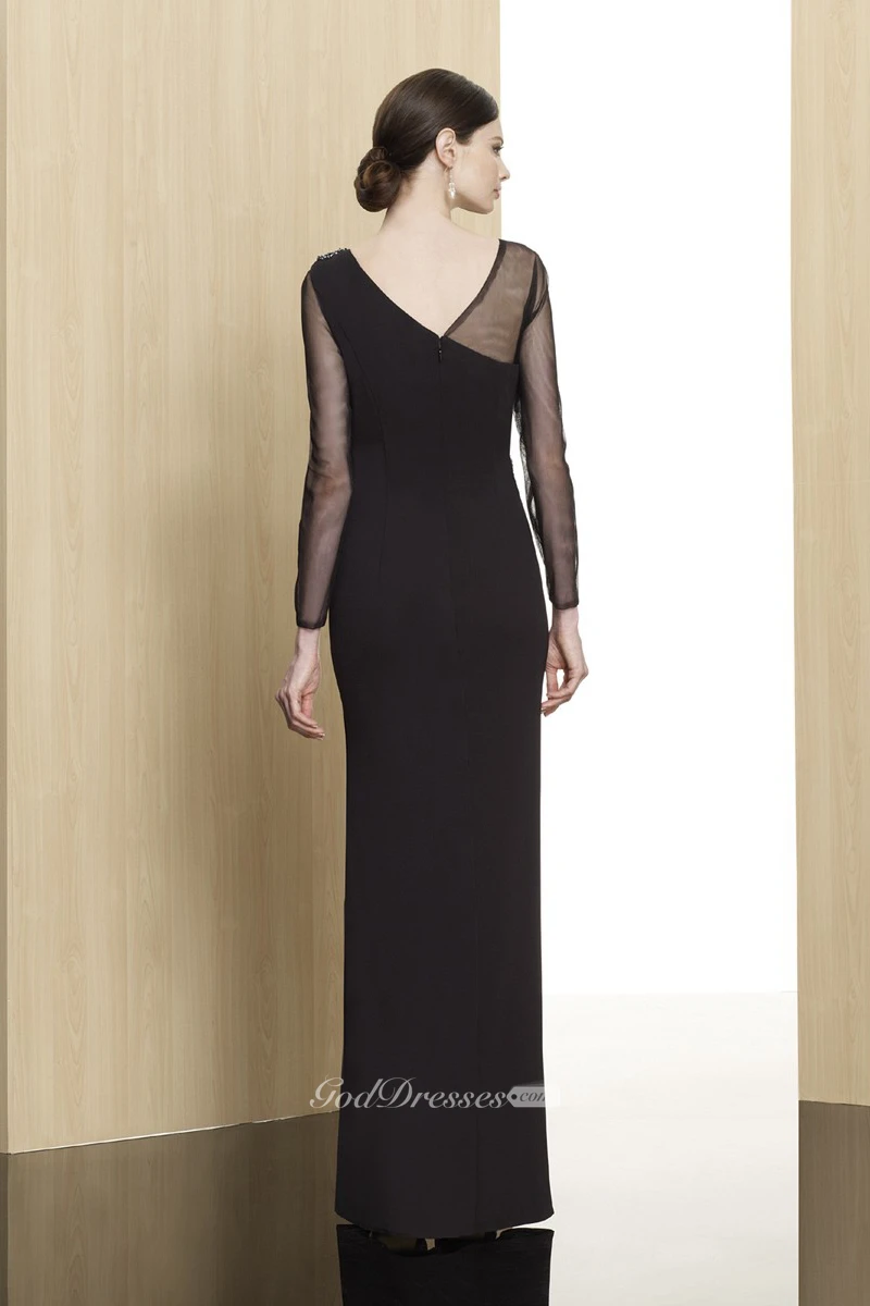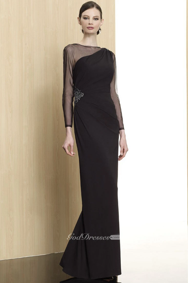 Sheath Jewel Neck Beaded Illusion Sleeve Chiffon Formal Dress