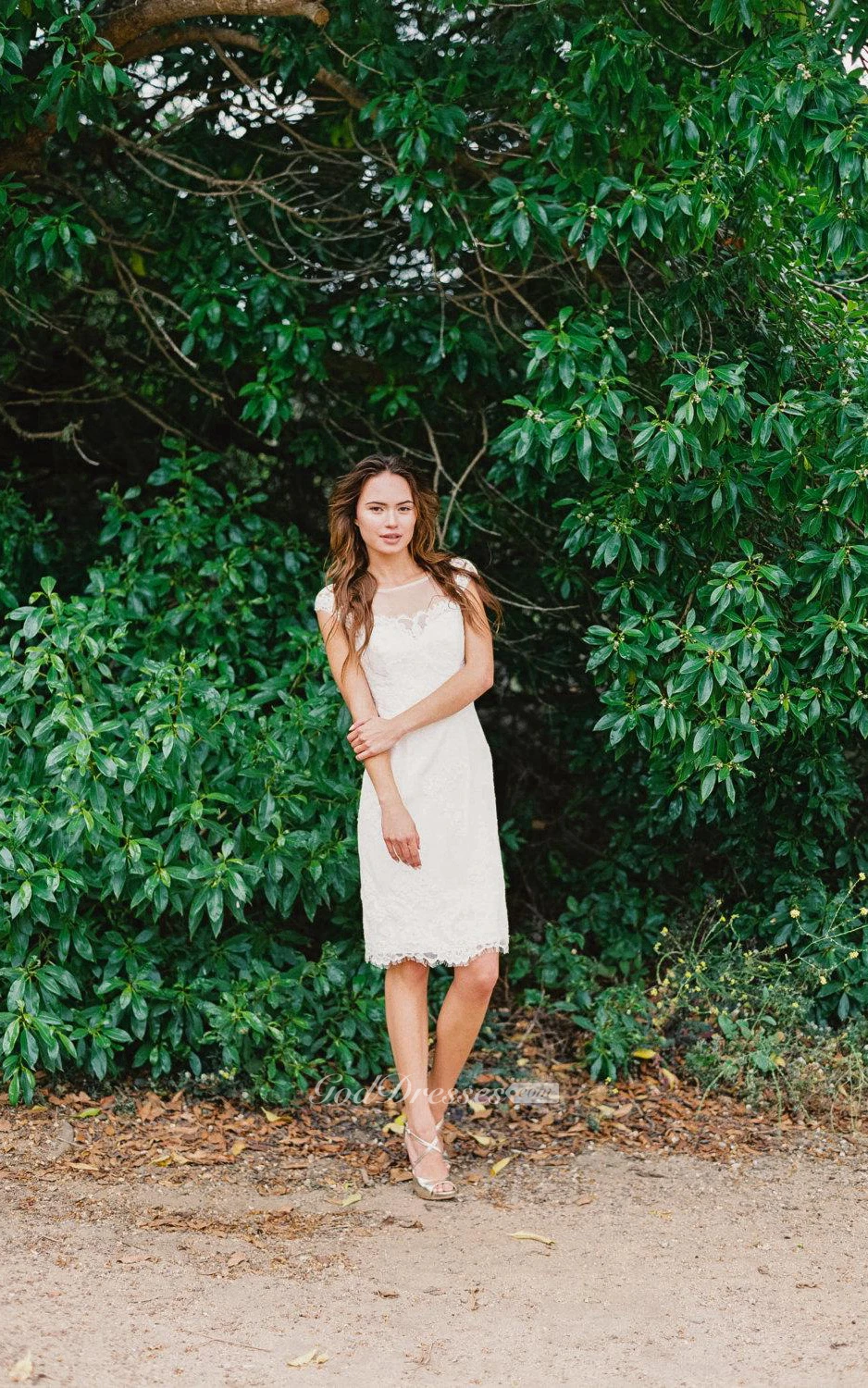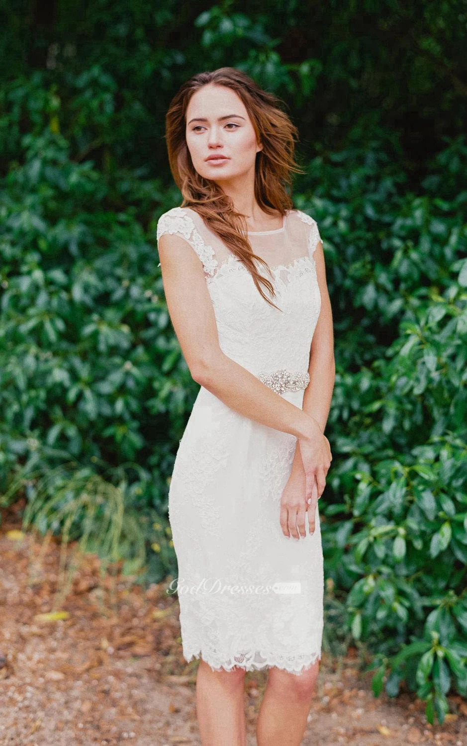 Sheath Knee Length Lace Dress With Bateau Neck and Short Sleeves