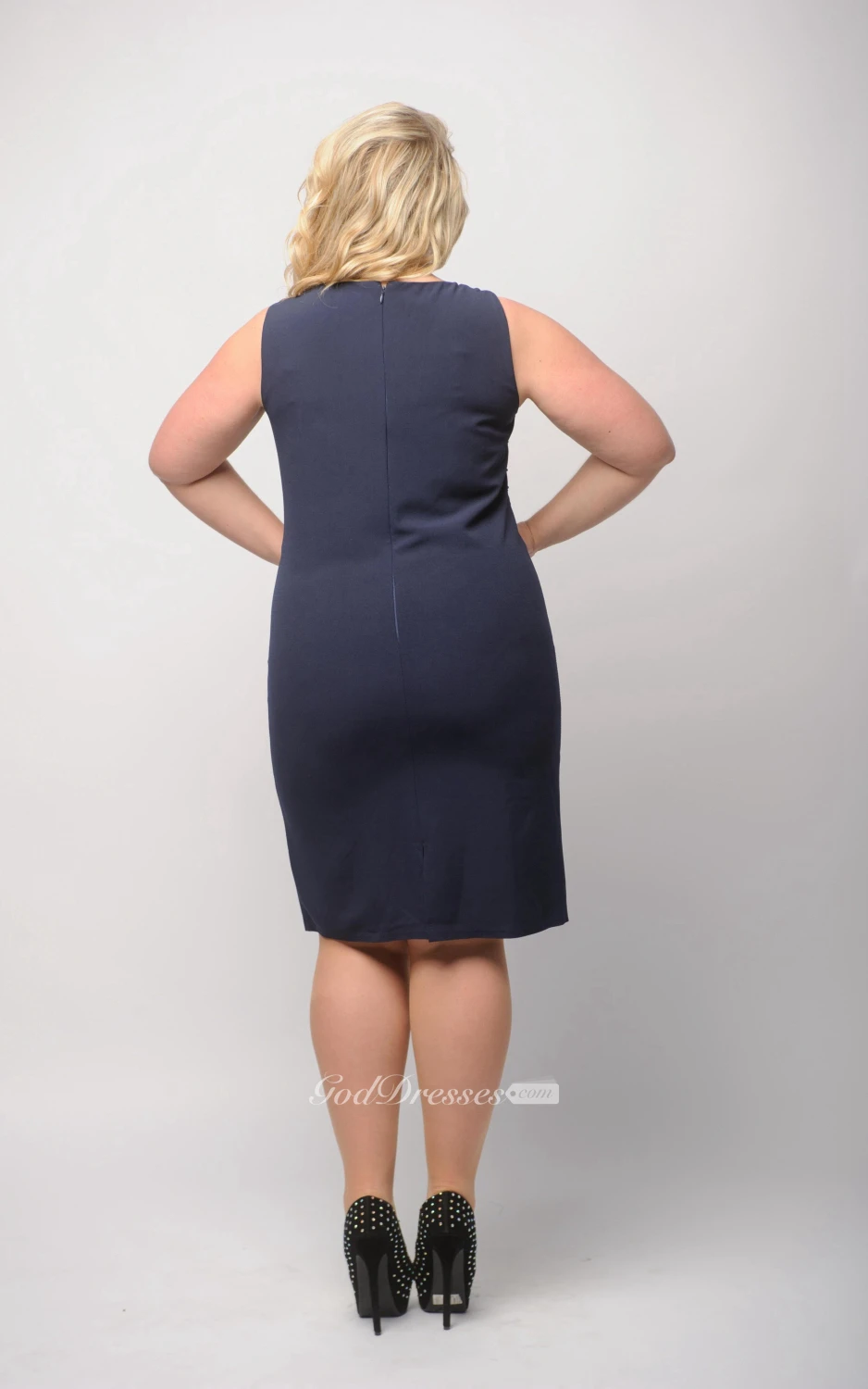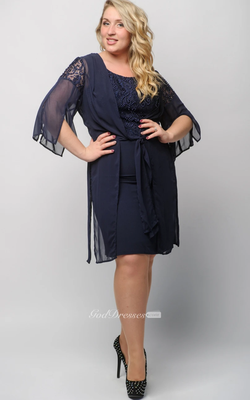 Sheath Knee-Length Scoop 3 Chiffon Pleats Lace Zipper Dress