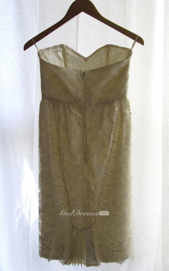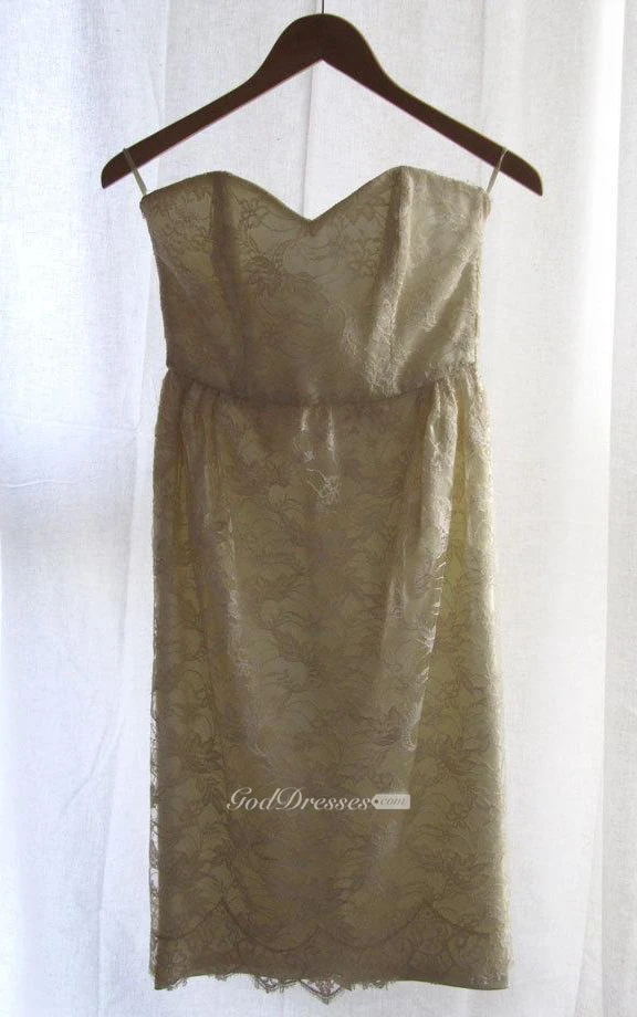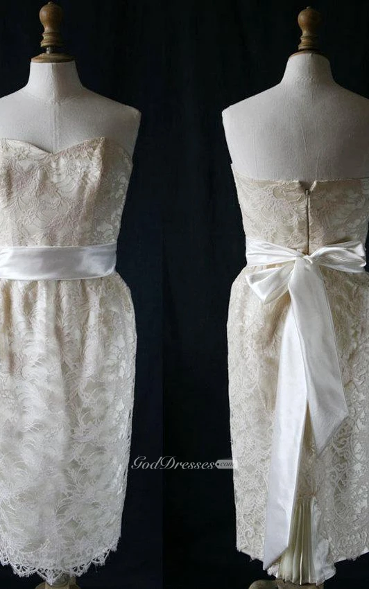 Sheath Lace Sweetheart Short Dress With Spaghetti Straps and Removable Bow Sash