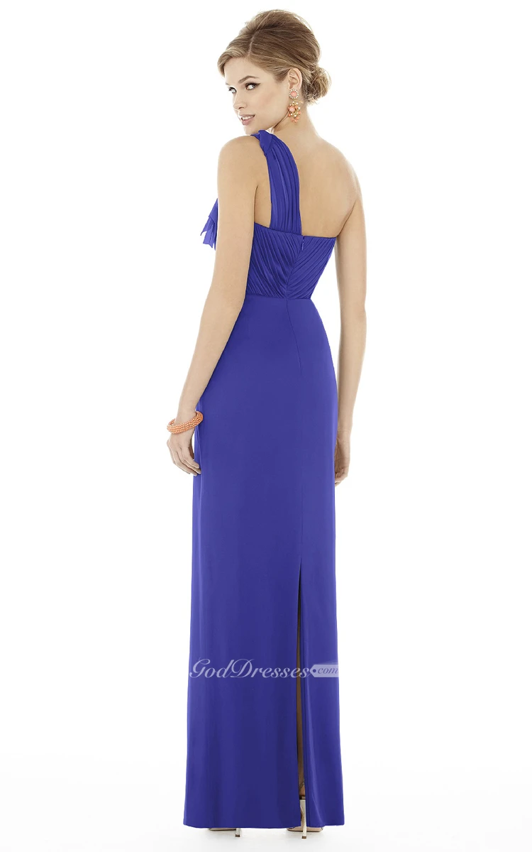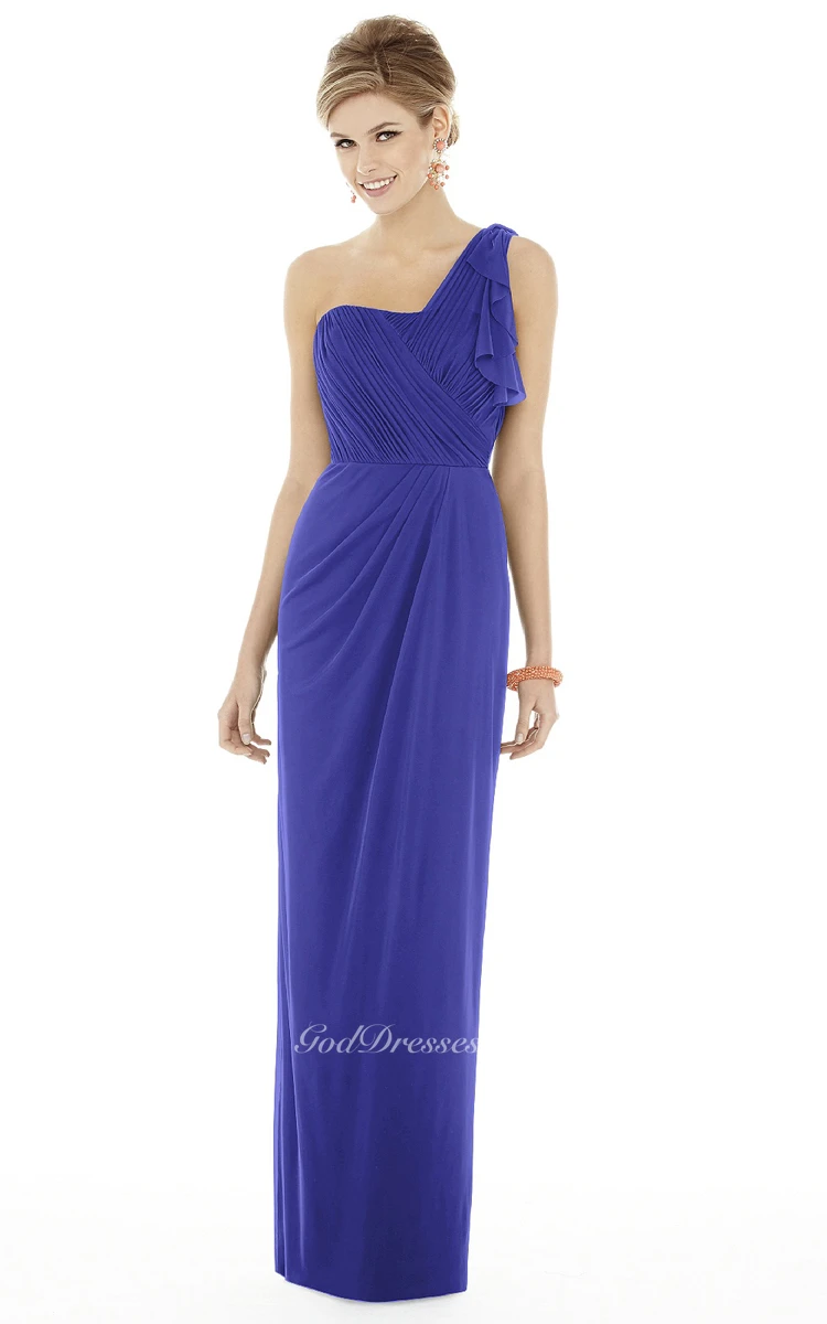 Sheath Long Ruched Criss Cross One-Shoulder Chiffon Gown
