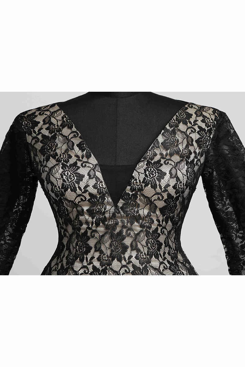 Sheath Long Sleeve Knee-length Zipper Keyhole Sexy Lace Dress with Lace