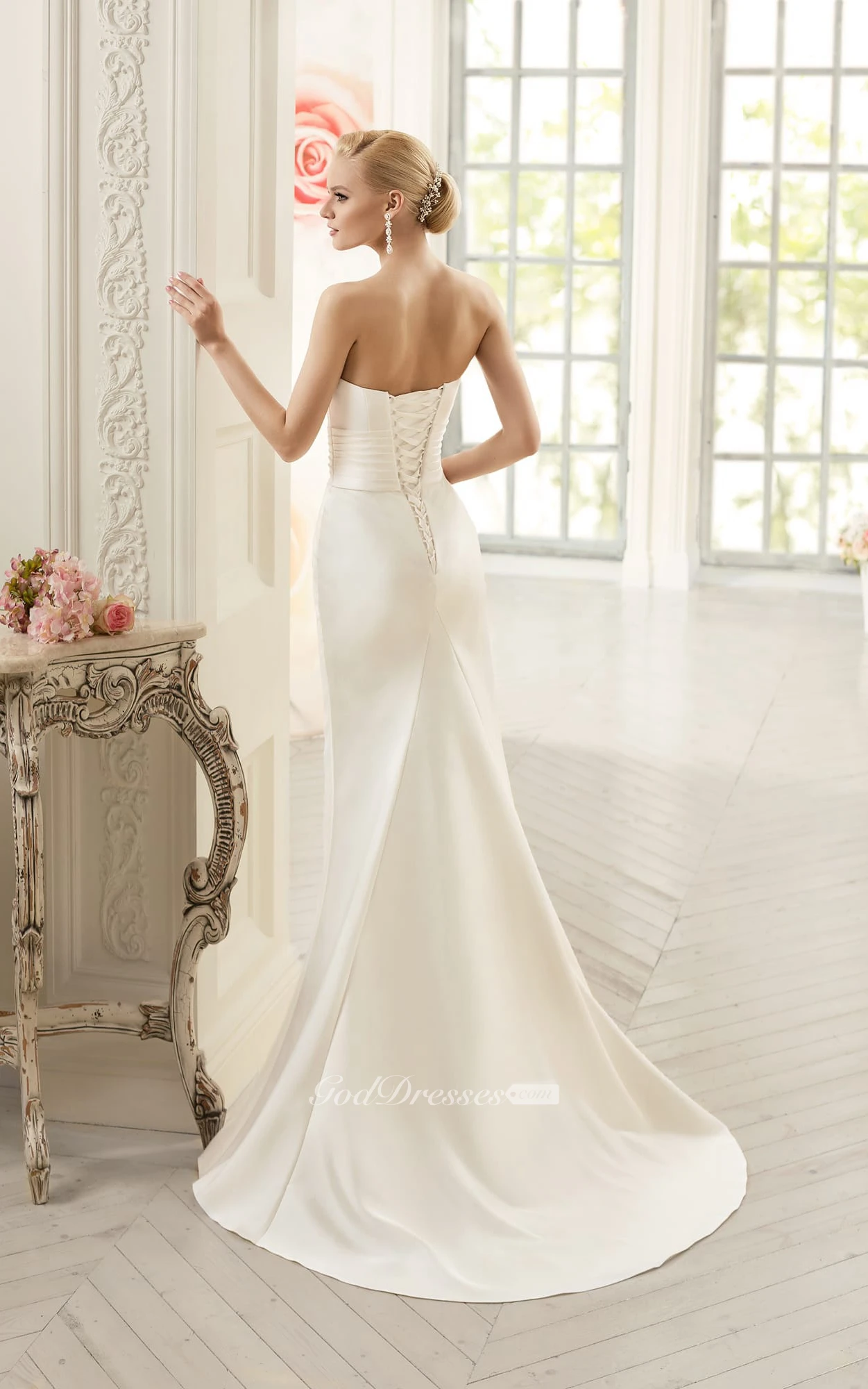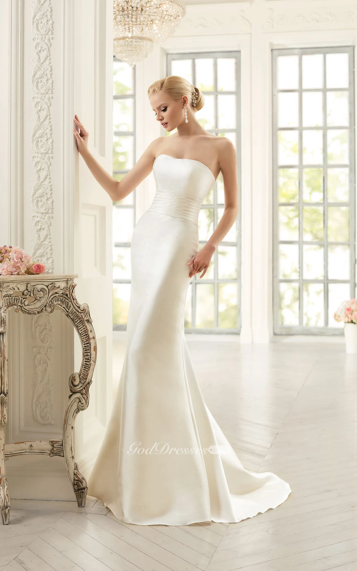Sheath Long Strapless Sleeveless Lace-Up Satin Dress