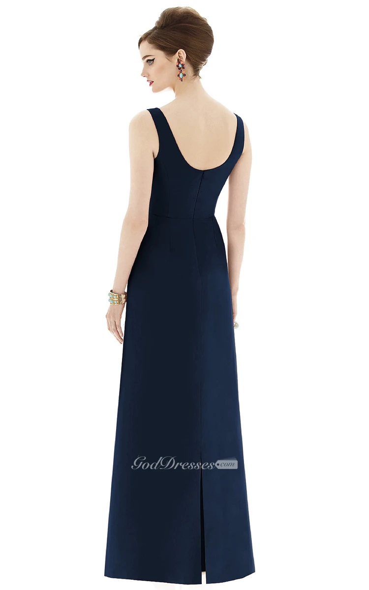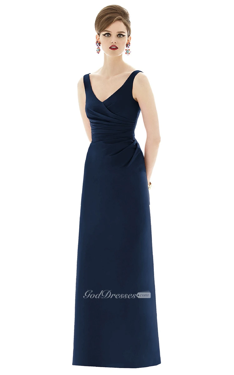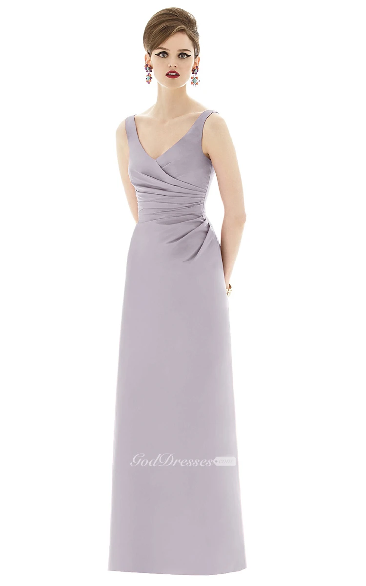 Sheath Long V-Neck Side Ruched Gown with Low-V Back