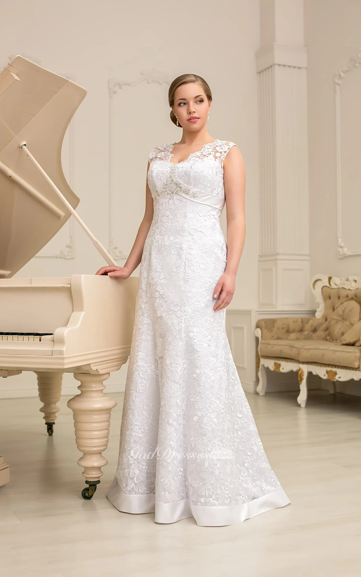 Sheath Long V-Neck Sleeveless Lace-Up Lace Dress With Beading