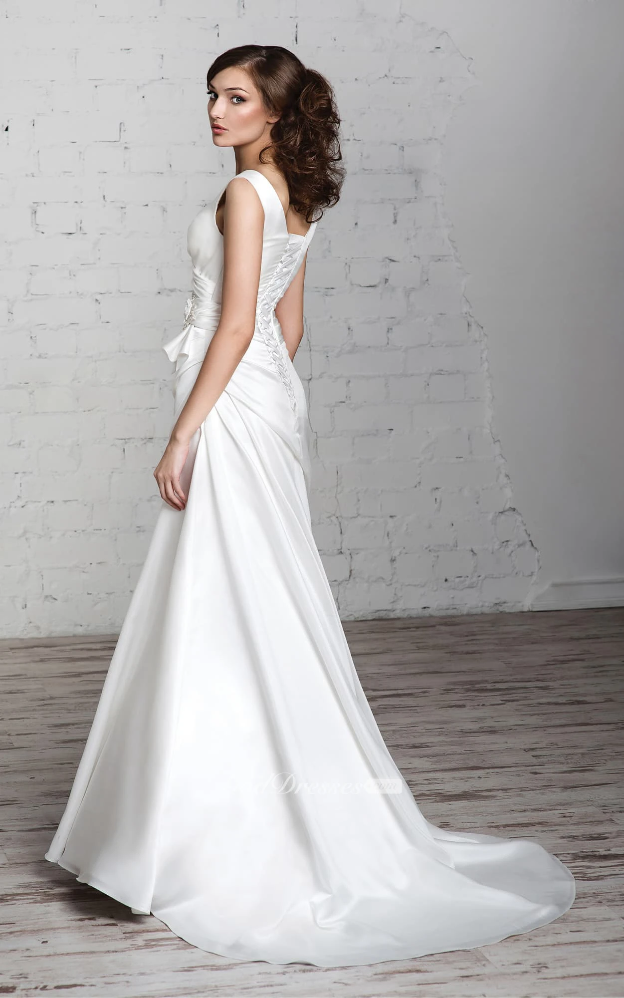 Sheath Maxi V-Neck Sleeveless Lace-Up Satin Dress With Side Draping