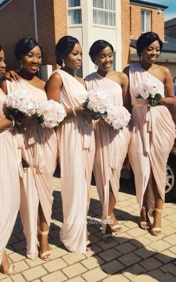 Sheath One-shoulder Sleeveless Front Split Ruffles Zipper Chiffon Dress