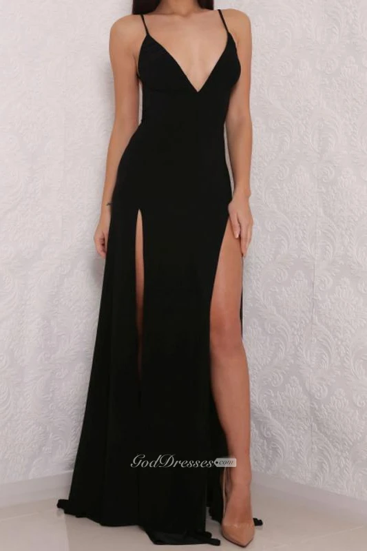 Sheath Organza Spaghetti V-neck Sleeveless Open Back Backless Dress
