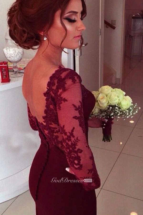Sheath Satin Lace Sweetheart Long Sleeve Open Back Button Zipper Dress