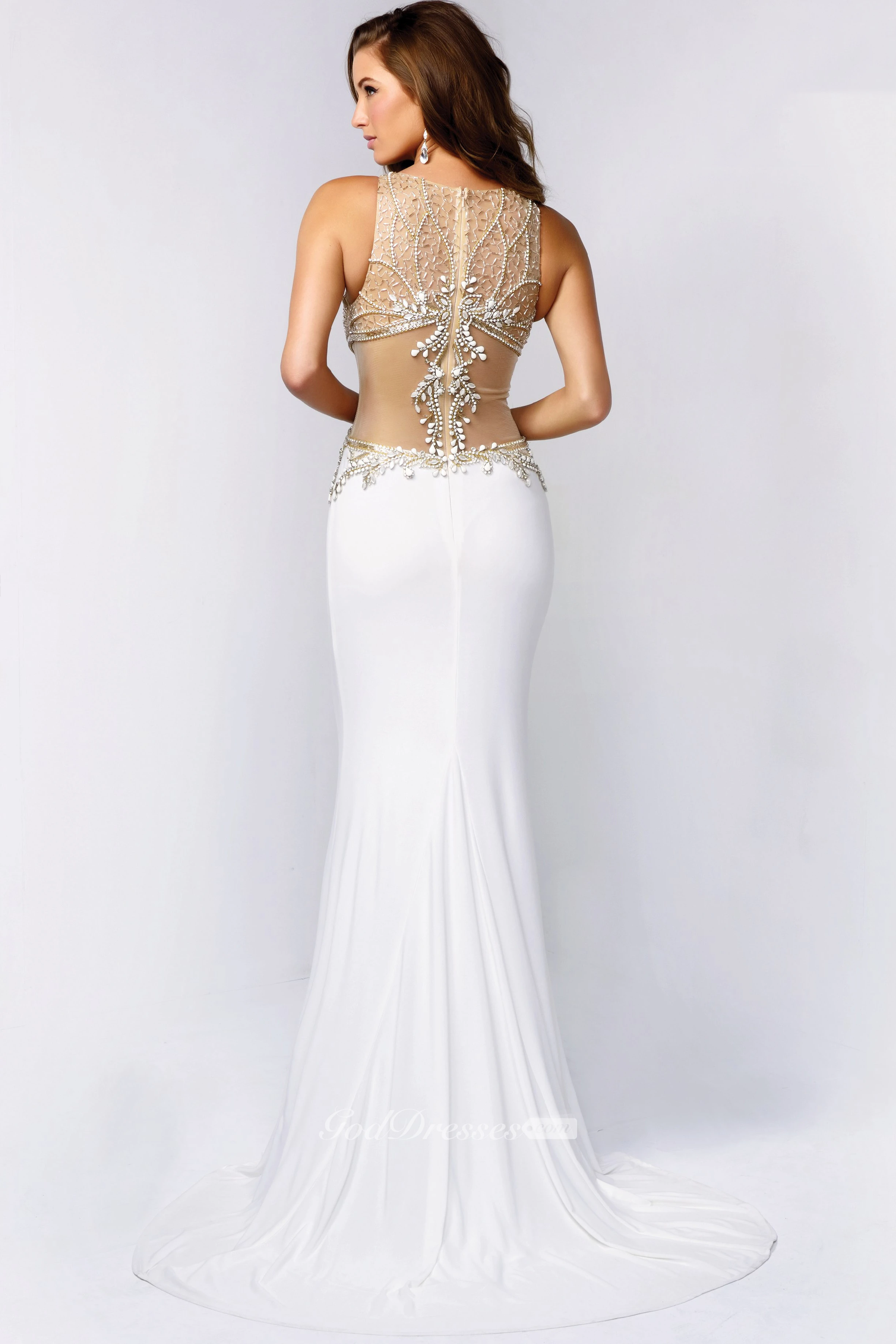 Sheath Scoop-Neck Sleeveless Jersey Illusion Dress With Beading
