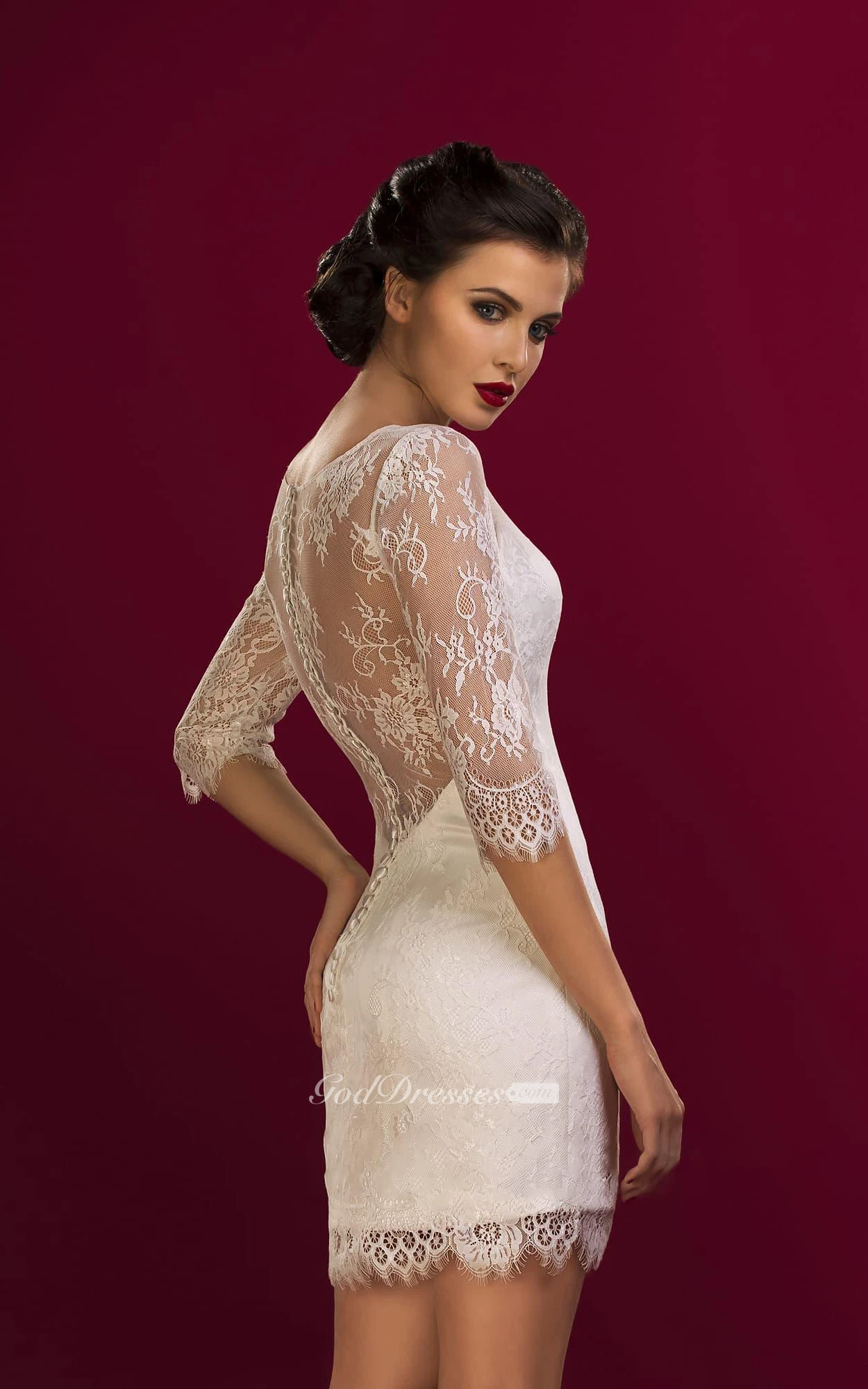 Sheath Short Jewel Half Sleeve Bell Illusion Illusion Zipper Illusion Lace Dress