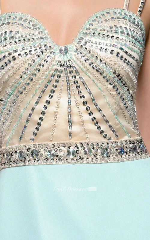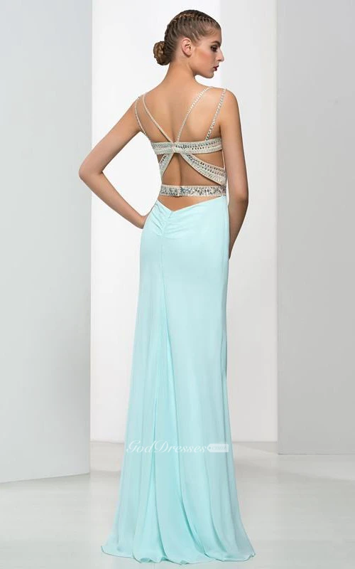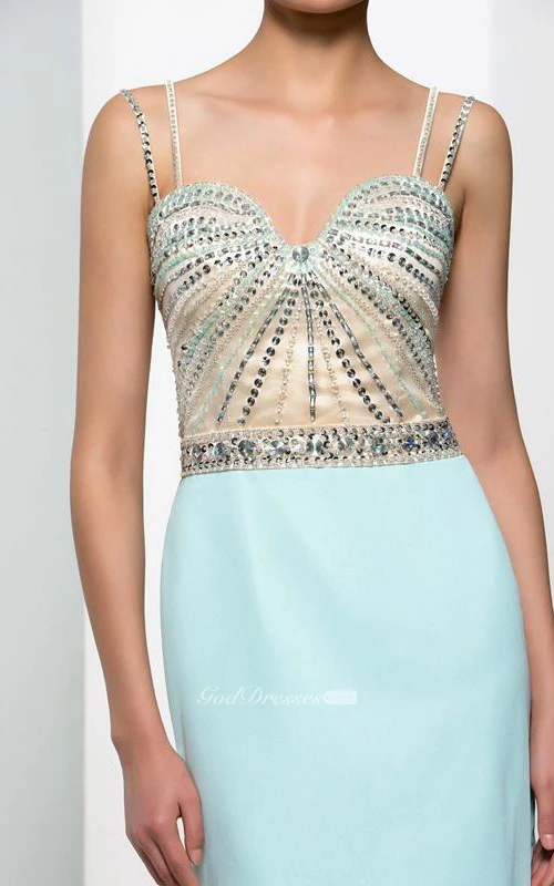 Sheath Spaghetti Straps Beading Hollow Evening Dress