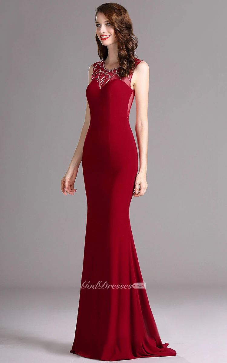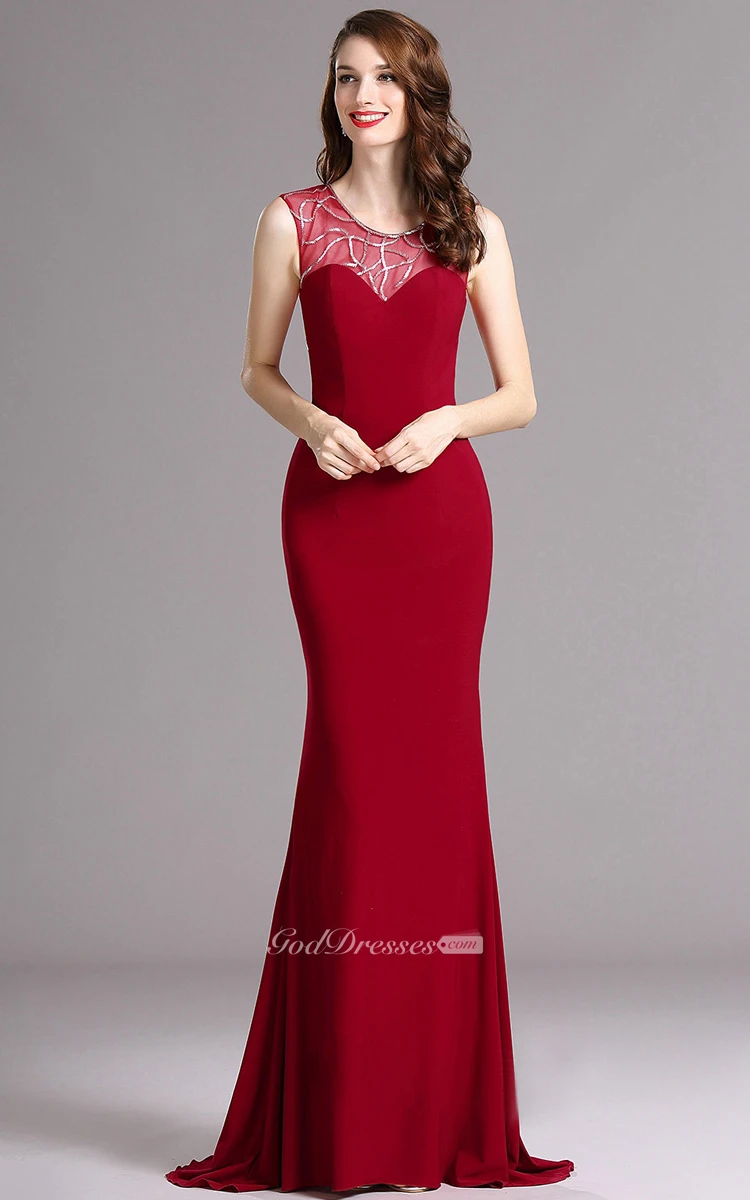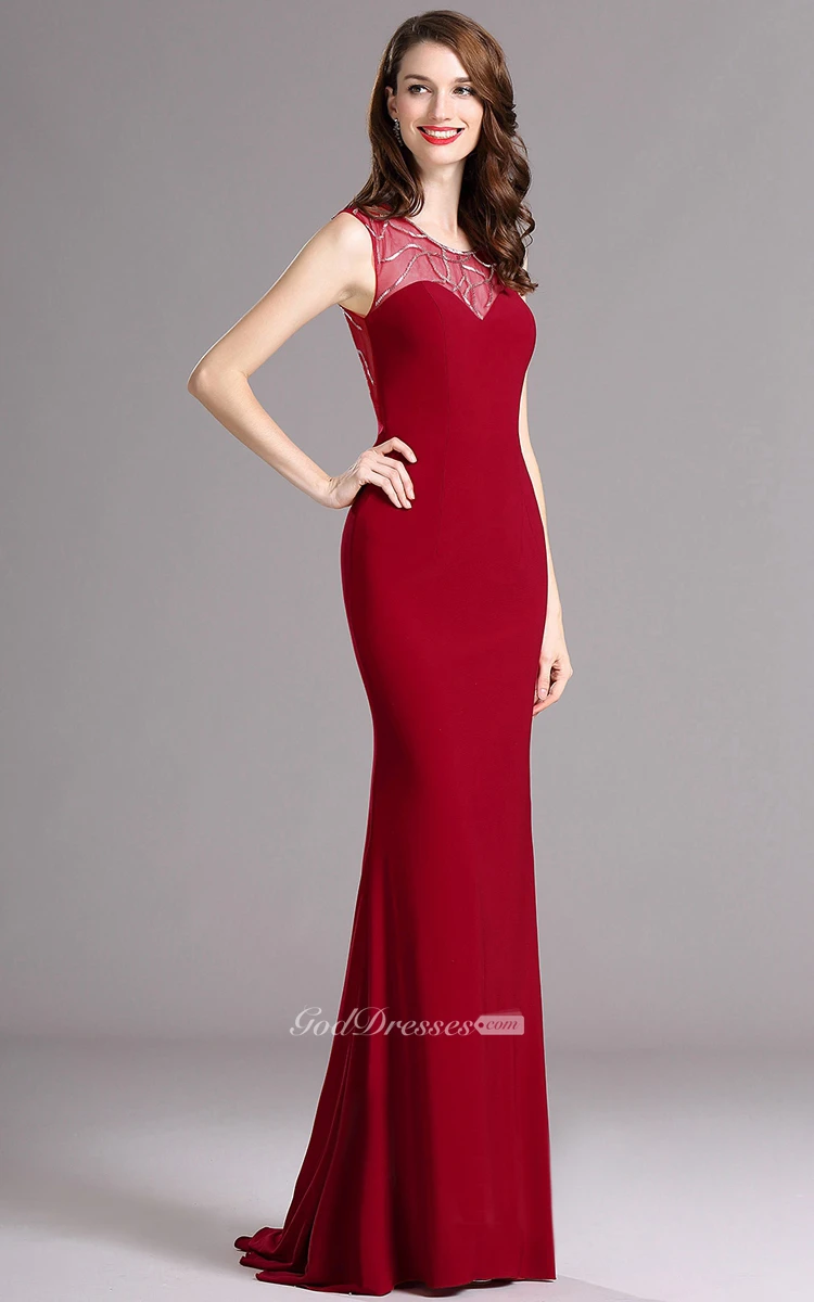 Sheath Sweep Scoop Sleeveless Jersey Sequins Dress