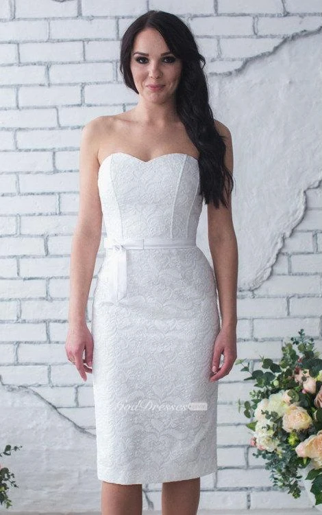 Sheath Sweetheart Knee Length Lace Dress With Lace-Up Back